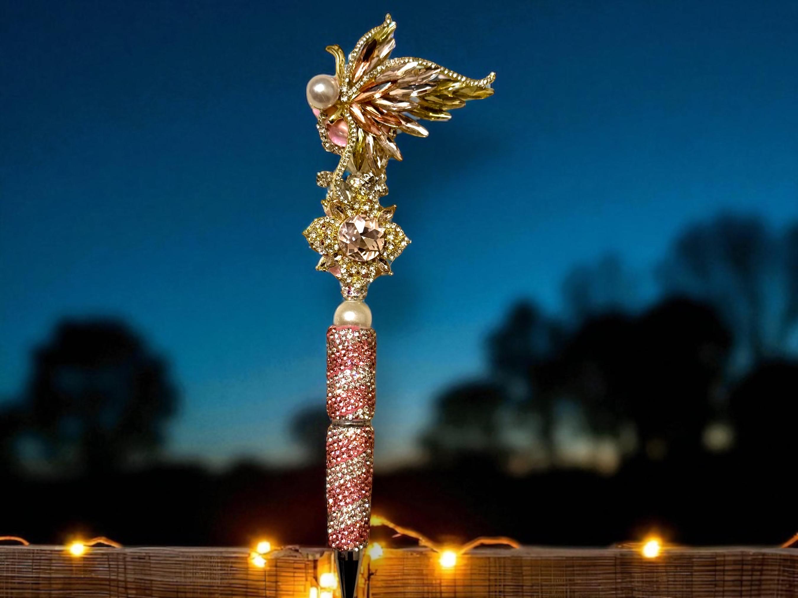 Indulge in the elegance of our Pink Butterfly Rhinestone Pen, a stunning fusion of gold and pink that transforms the ordinary act of writing into a luxurious experience. Adorned with a delicate pink butterfly, this exquisite pen not only serves as a functional writing instrument but also as a statement piece for your desk. The shimmering rhinestones catch the light, adding a touch of glamour to your everyday tasks. Elevate your writing experience and make every note a work of art with this enchanting pen, perfect for gifting or treating yourself.