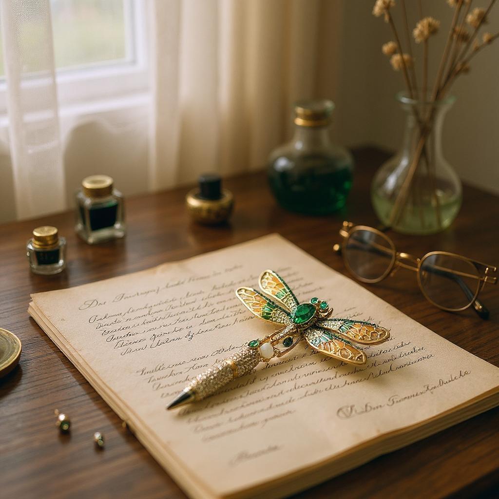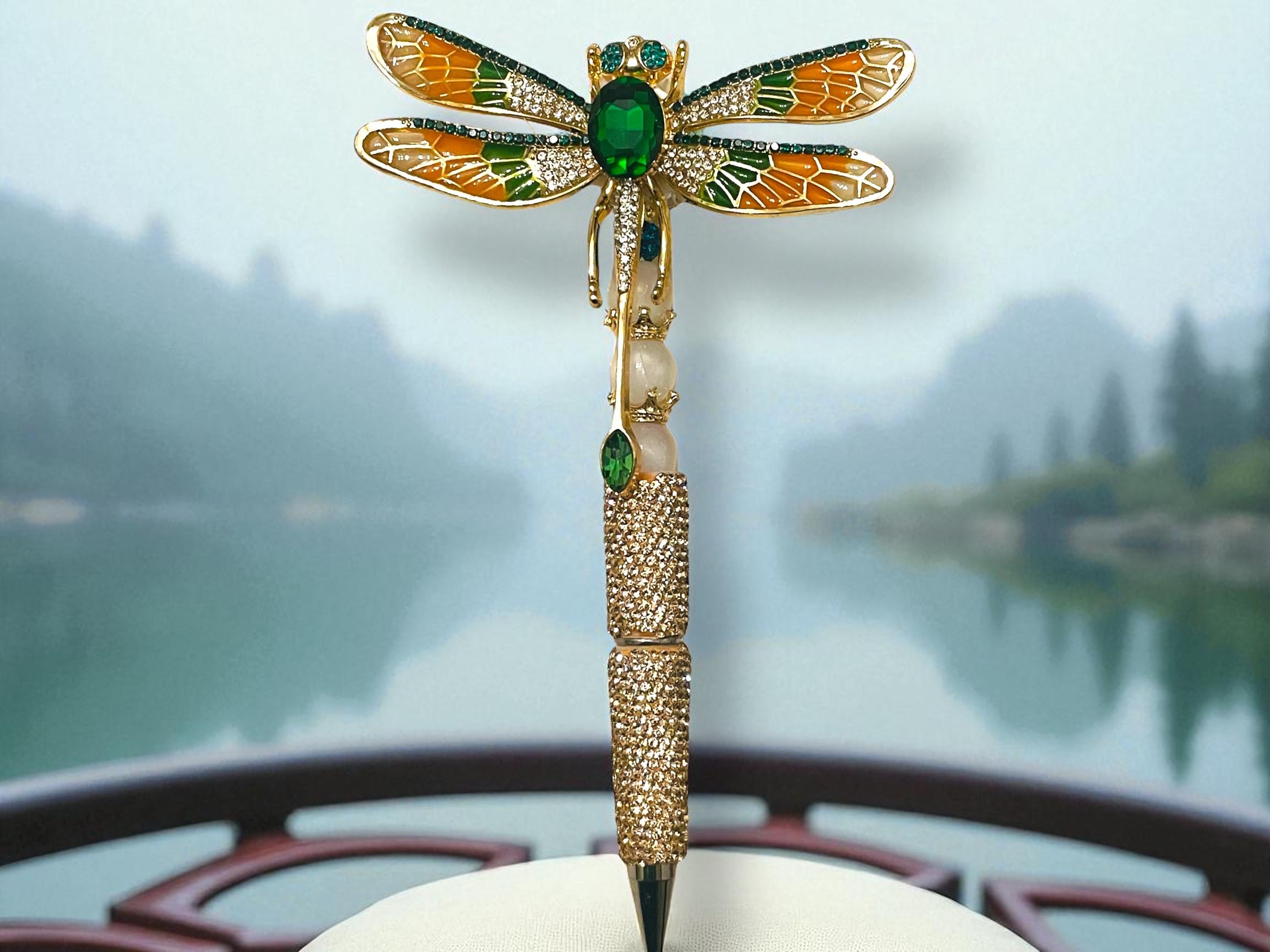 This stunning Golden Rhinestone Dragonfly Pen is a perfect blend of elegance and functionality. Adorned with sparkling rhinestones, this exquisite pen not only adds a touch of glamour to your desk but also makes a delightful statement piece when perched atop your favorite cake. Whether you're signing important documents or jotting down notes, this pen ensures a smooth writing experience while showcasing your unique style. Treat yourself or gift it to someone special—this dragonfly pen is sure to inspire creativity and charm!