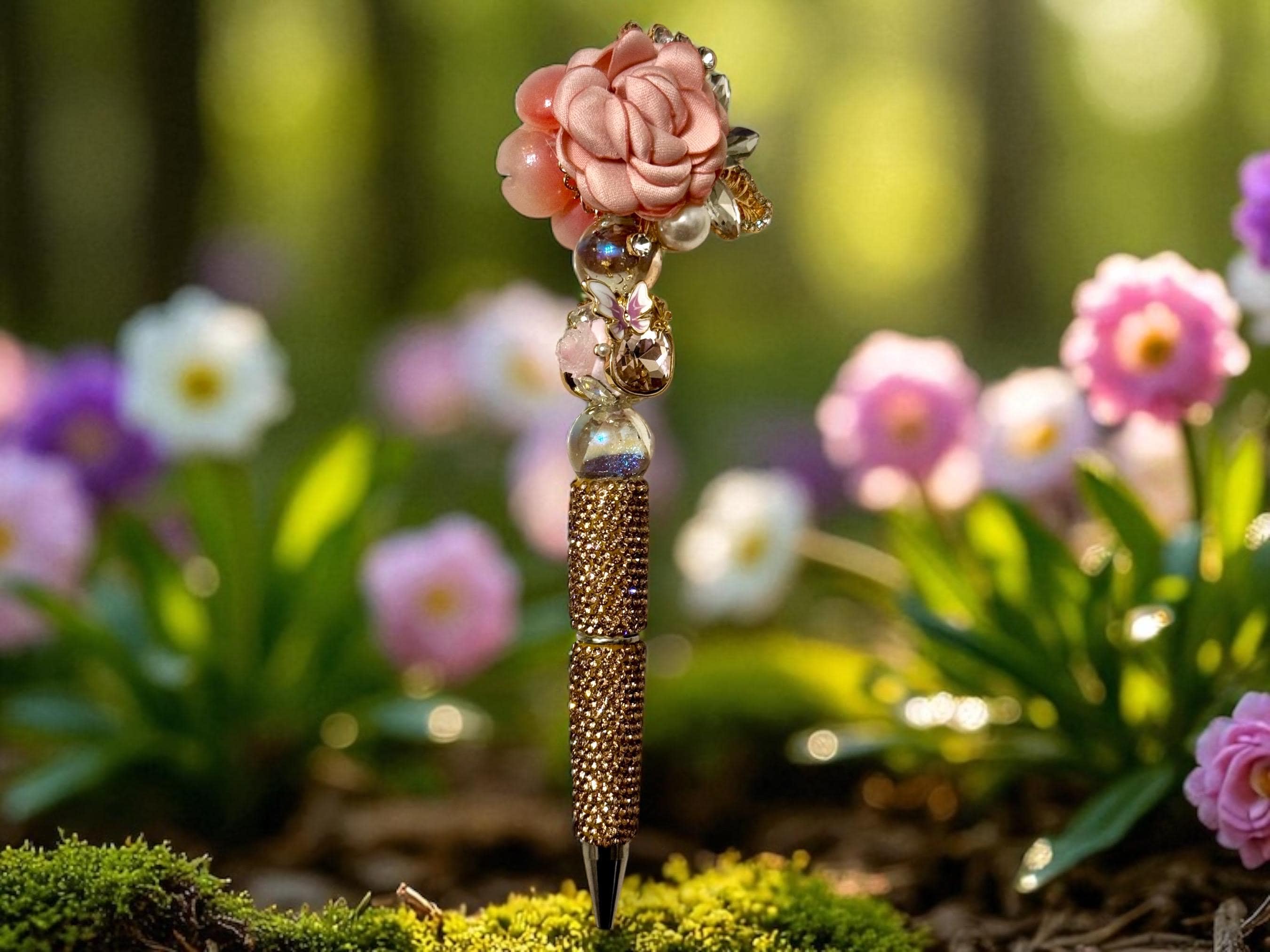 Elevate your writing experience with our stunning Rhinestone and Fabric Flower Pen, adorned with a delicate rose that adds a touch of elegance to your desk. This charming pen not only writes smoothly but also serves as a beautiful decorative piece, perfect for brightening up your workspace or as a thoughtful gift for a loved one. With its eye-catching design and vibrant colors, this pen is sure to inspire creativity and make every note a little more special.