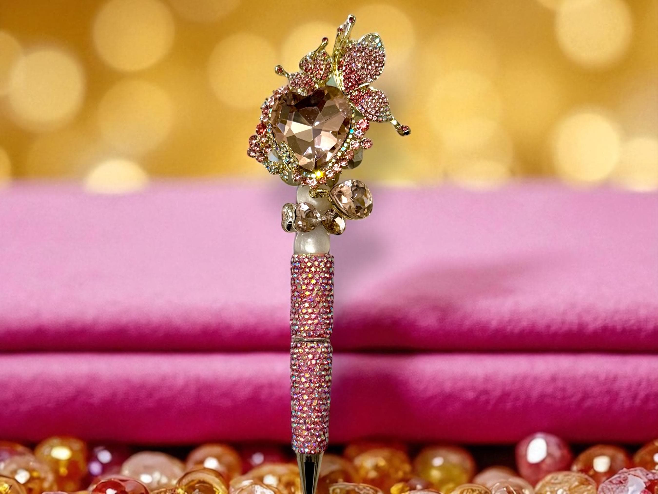Elevate your writing experience with our Pink Crystal Heart with Butterfly Rhinestone Pen. This stunning pen features a delicate gold finish adorned with a sparkling pink crystal and a charming butterfly rhinestone, making it the perfect accessory for any desk or handbag. Not only does it write smoothly, but it also adds a touch of elegance and whimsy to your everyday tasks. Treat yourself or gift it to someone special—this pen is sure to inspire creativity and brighten any writing moment!