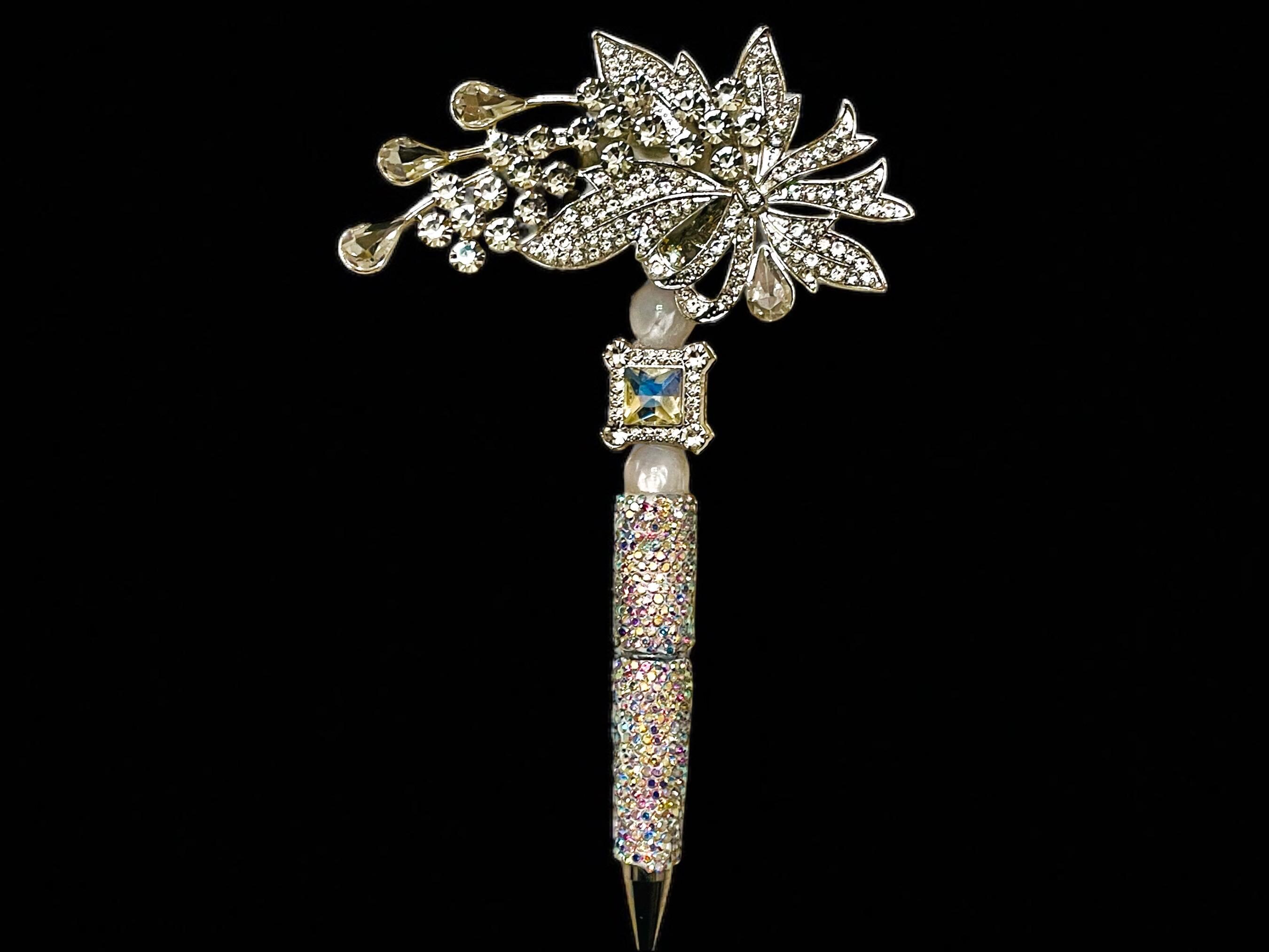 Elevate your writing experience with the Ornate Crystal Bow Rhinestone Pen, a stunning blend of elegance and functionality. Adorned with a delicate flower and sparkling crystal accents, this pen is not just a writing instrument but a statement piece for your desk. Its smooth ink flow ensures effortless writing, while the eye-catching design makes it a perfect gift for anyone who appreciates beauty in the everyday. Make your notes and signatures shine with this exquisite pen that combines style and practicality in one delightful package.