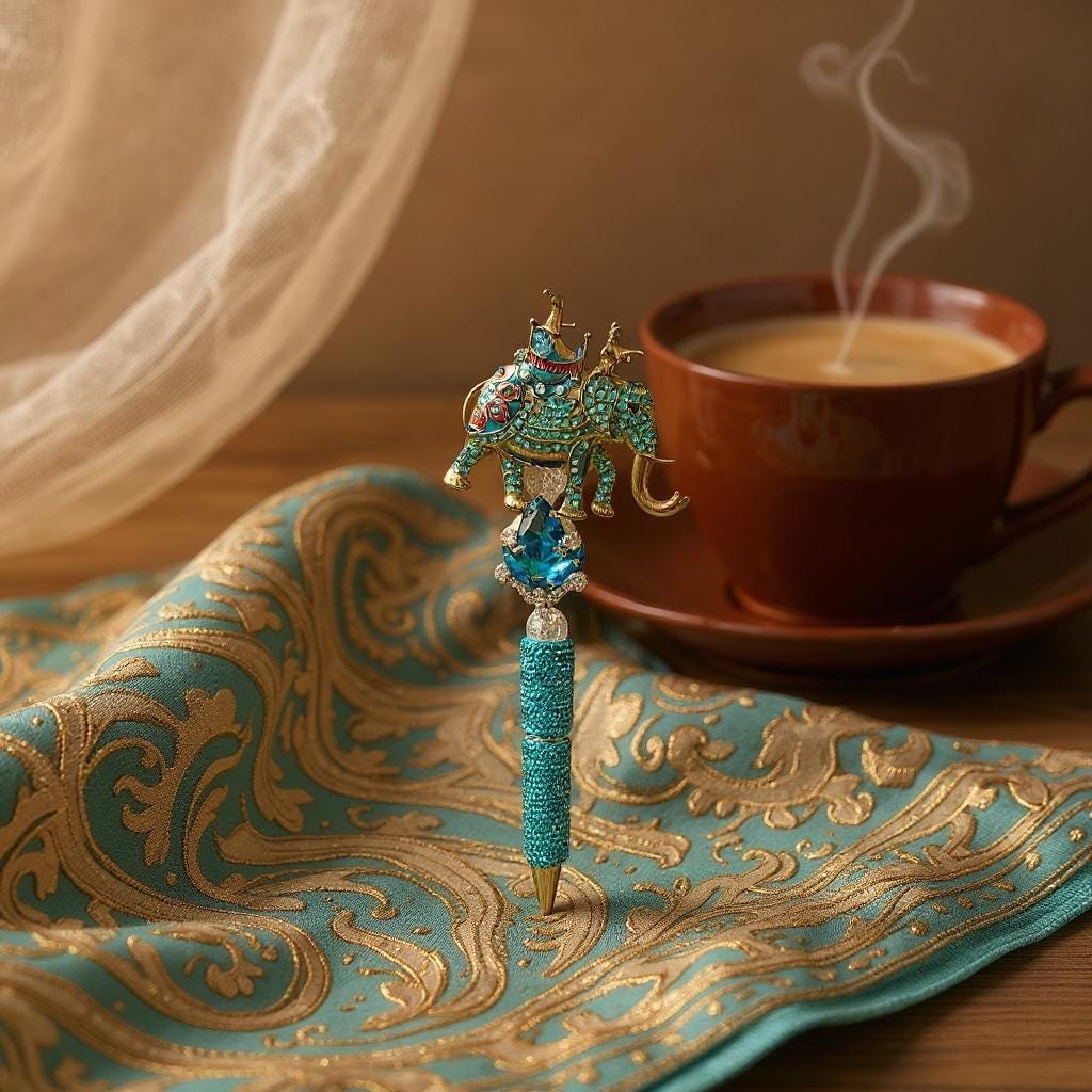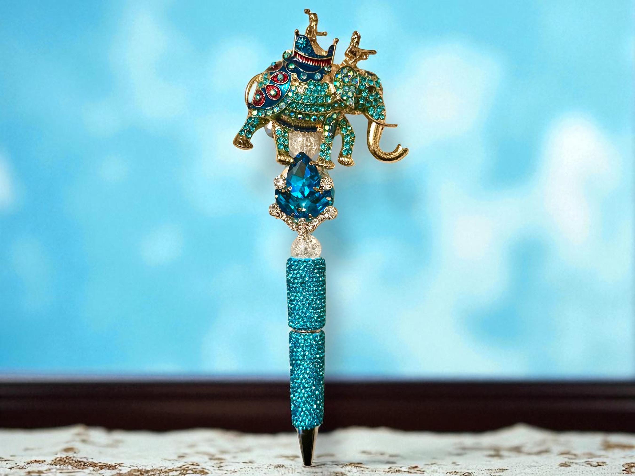Imagine holding a little piece of royal luxury right in your hand—the Blue Jeweled Elephant Rhinestone Pen is not just a writing tool; it's a statement piece. Encrusted with dazzling rhinestones, this pen captures the essence of bold elegance. The intricate elephant design atop the pen embodies strength and wisdom, while the rich blue jewel adds a splash of color that's sure to turn heads.