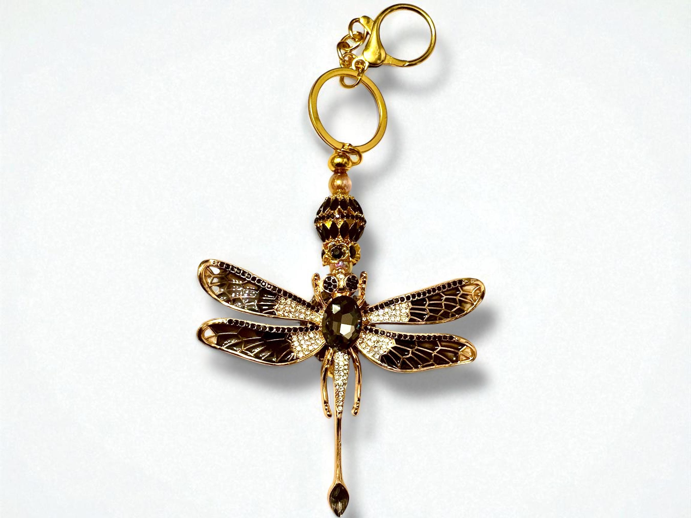 Hey there! Imagine adding a sprinkle of magic to your everyday style with our Black and Gold Dragonfly Rhinestone KeyChain/Purse Charm. This charming accessory is not just a keychain; it's a bright and shiny companion ready to elevate any bag, clutch, or set of keys. Let's talk about what makes this little gem your next must-have: