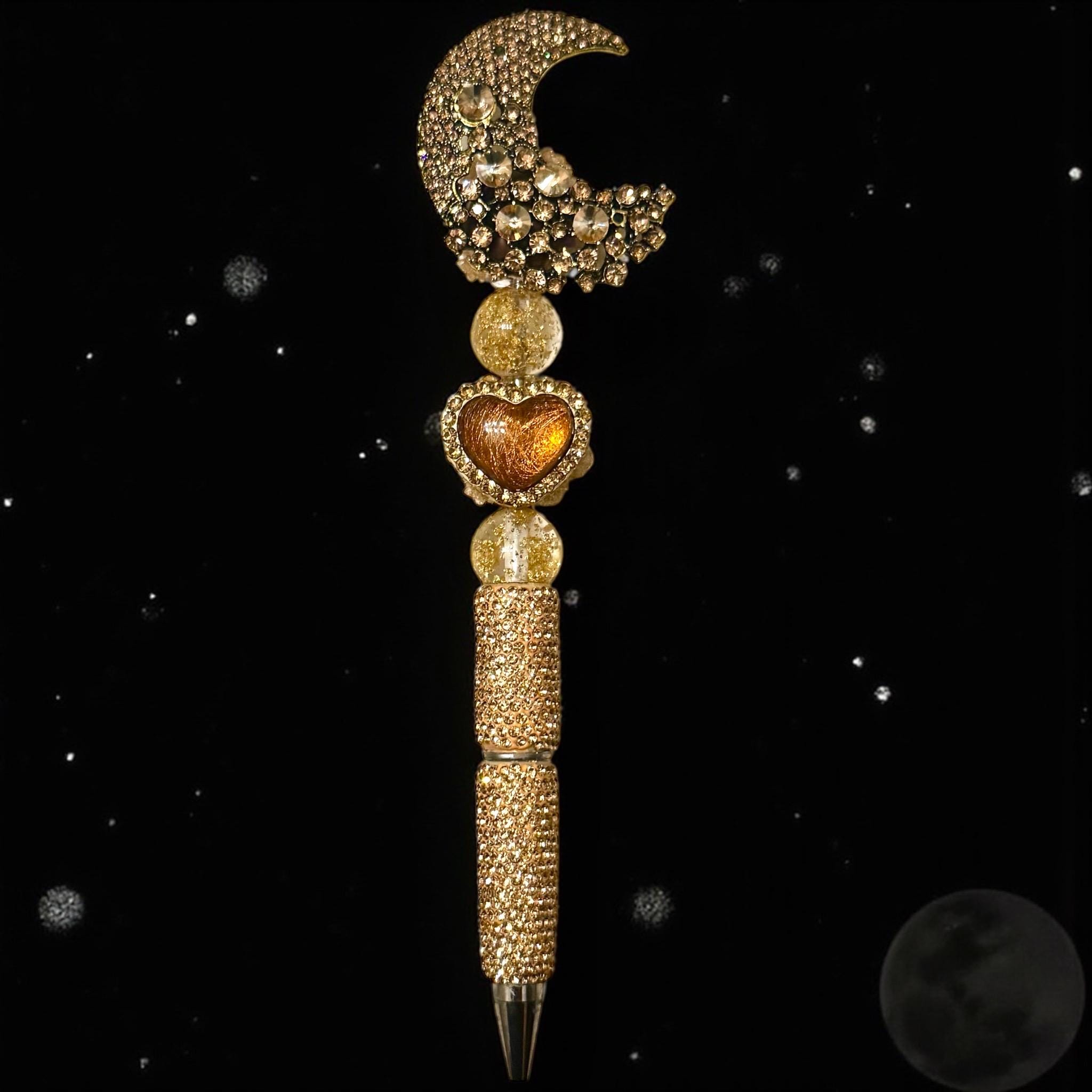 Make each writing task a luxurious escape with the Gold Rhinestone Moon Pen.