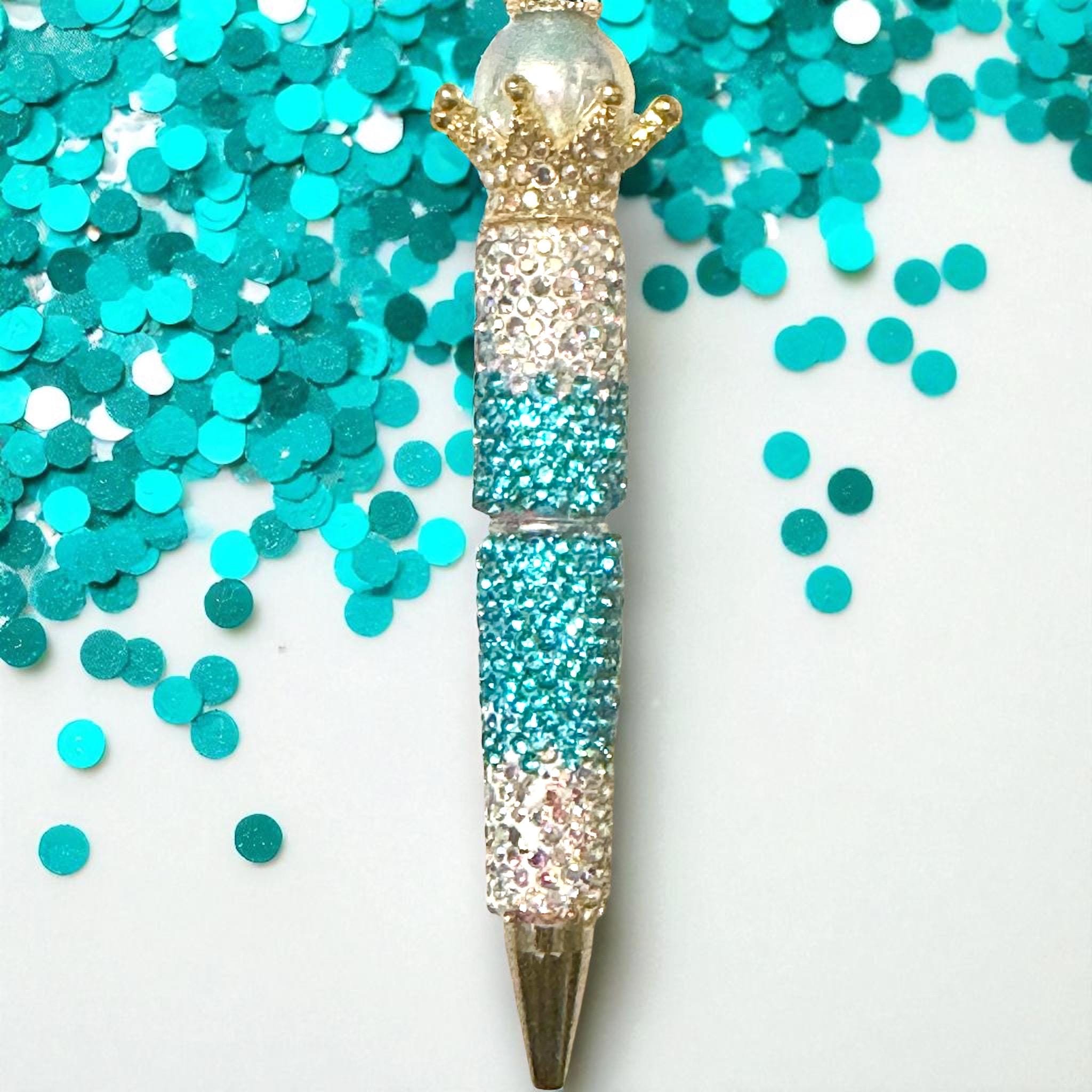 Luxurious Finish: Gleaming blue jewels encase the pen, creating an eye-catching and sophisticated look.
