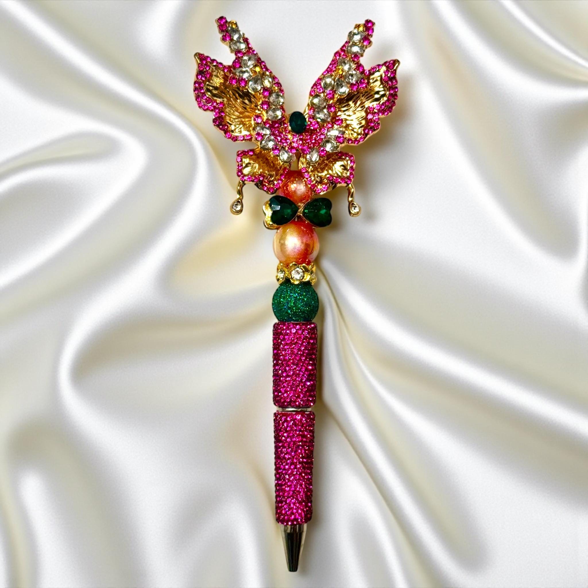 Prepare to Flutter: The Pink Enamel and Metal Butterfly Rhinestone Pen