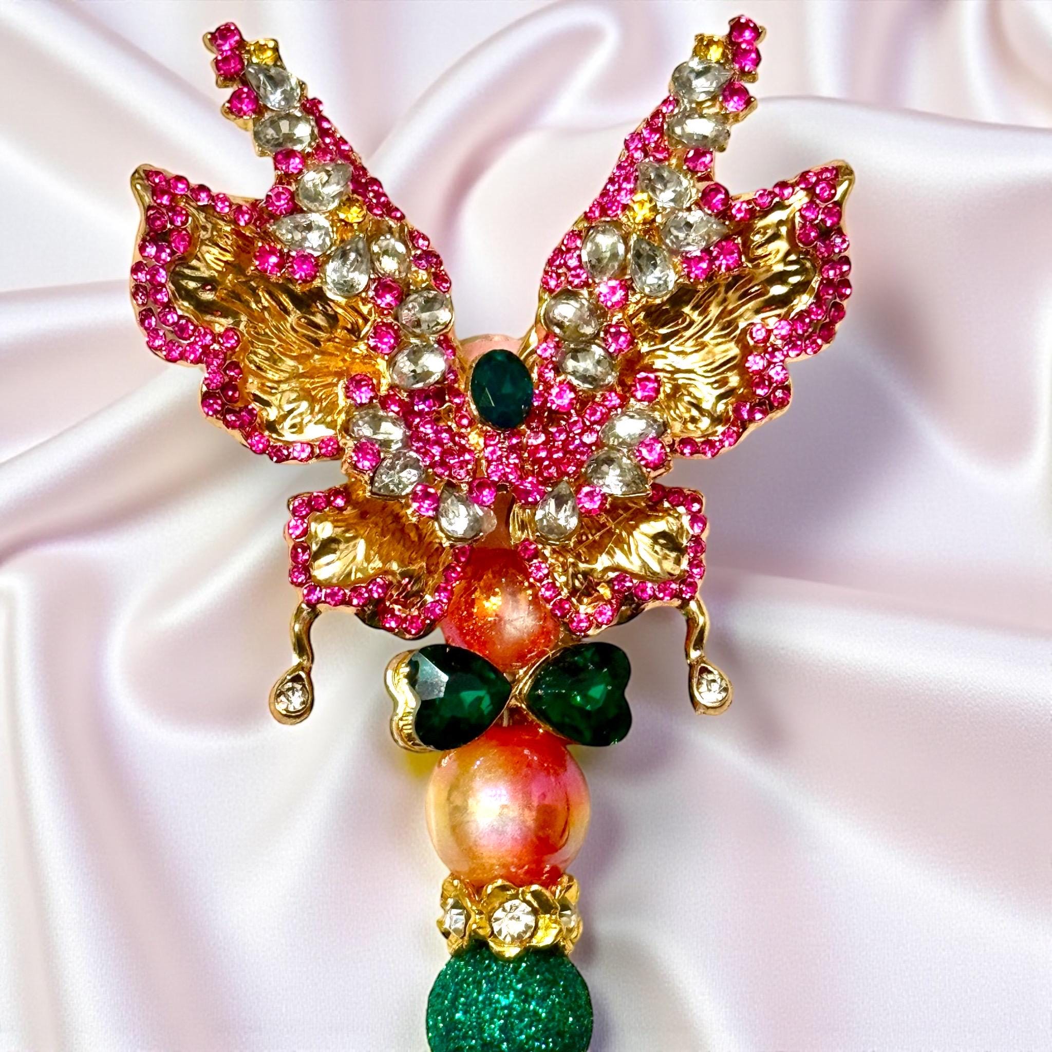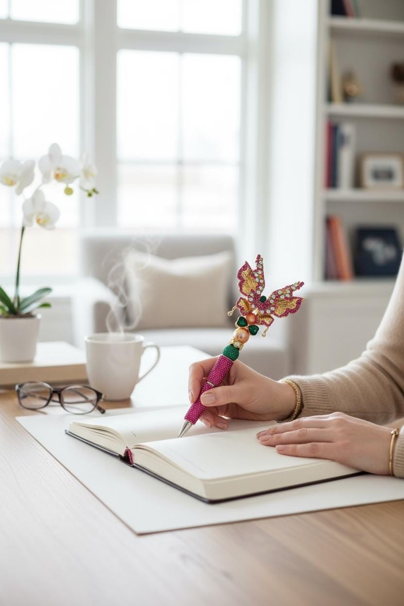 Butterfly Bling: The butterfly on top brings a touch of whimsy and a flutter of fortune every time you jot a note or doodle a masterpiece.