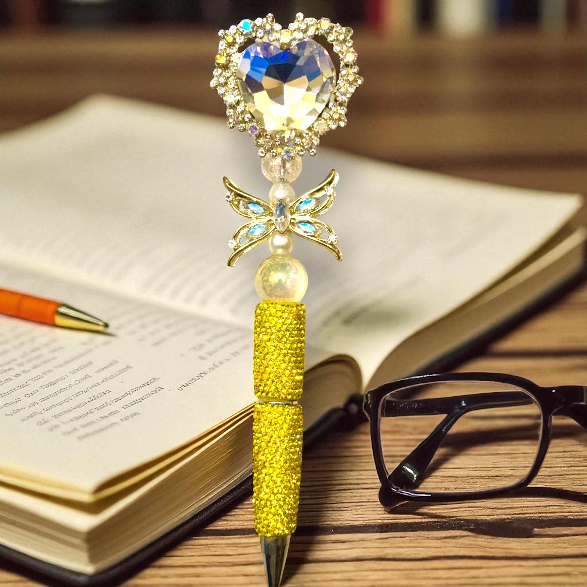 Elegant Design: The Crystal Heart Rhinestone Pen is the epitome of sophistication, featuring a dazzling heart-shaped gem complemented by exquisite rhinestones. This pen transforms the simple act of writing into an elegant affair.