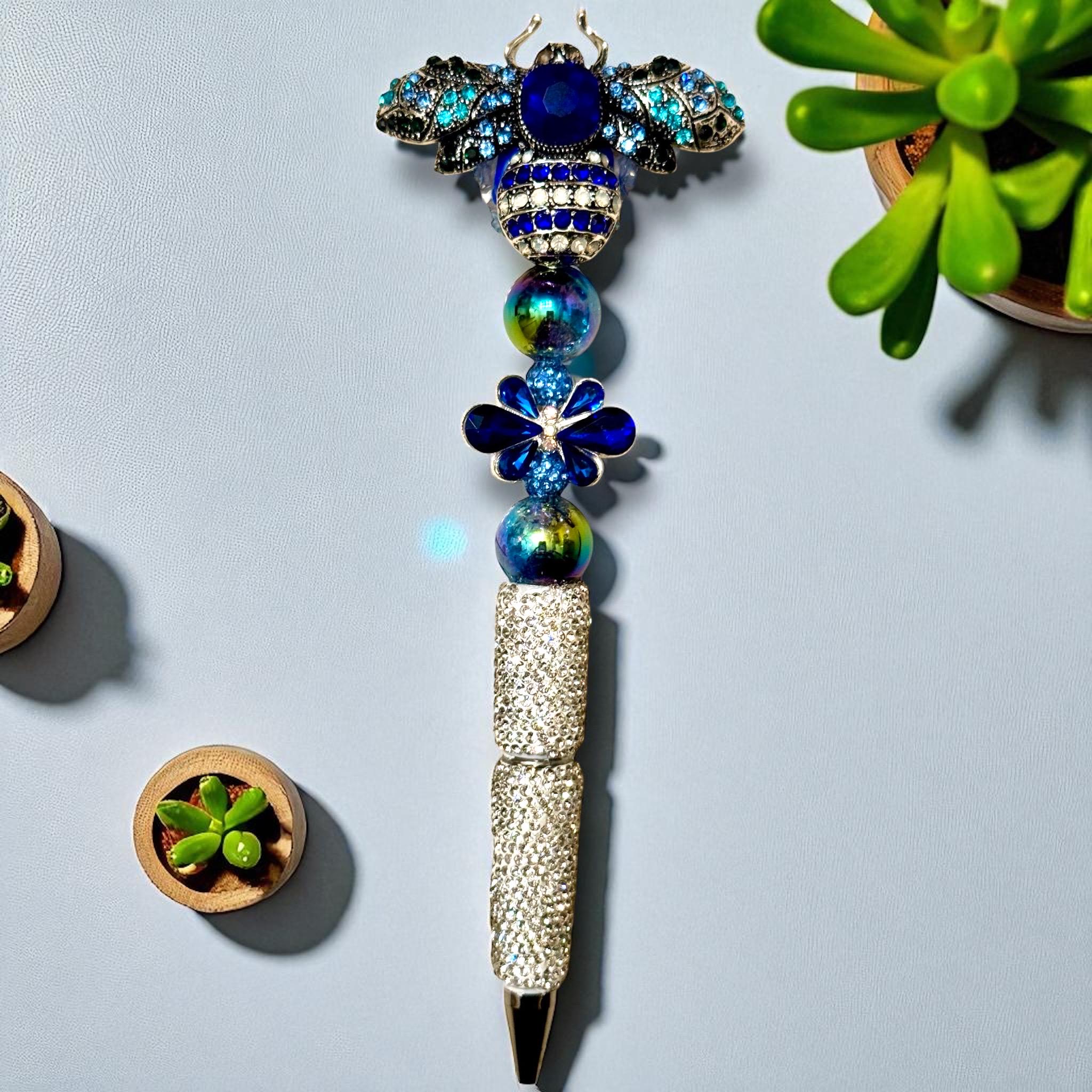 Step aside ordinary pens, the Blue Jeweled Bee Rhinestone Pen is here to buzz its way into your stationery collection! This isn't just a pen; it's a conversation starter, an envy-inducing masterpiece, and your new chief of doodling operations. Say goodbye to boring note-taking with this blue wonder inspired by the only insect that could rival Twitter in the buzz department—a bejeweled bee!