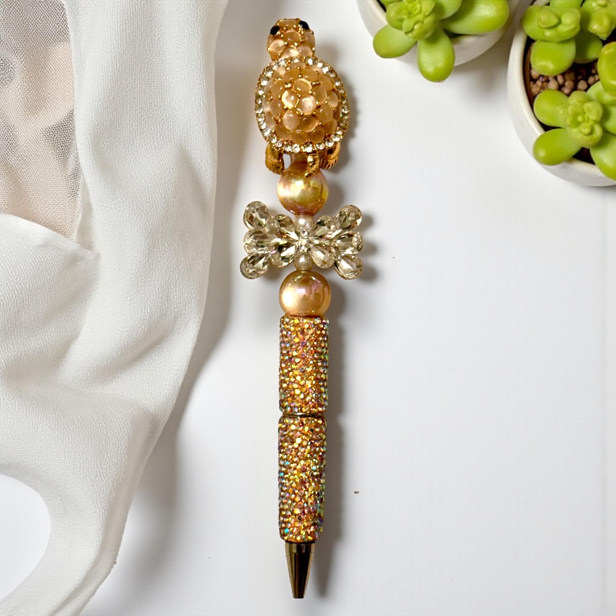 Elegance in Detail: Accentuated with opulent pearls and rhinestones, the gold-toned pen embodies sophistication and style. Perfect for those who appreciate the finer things in life.