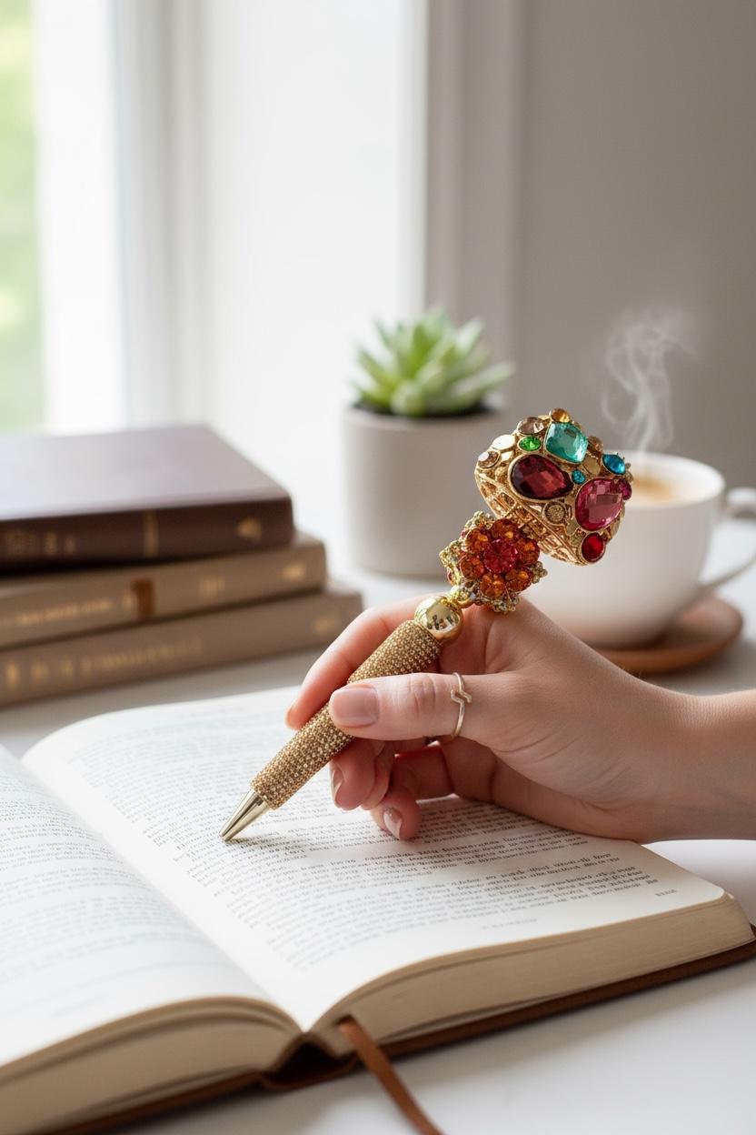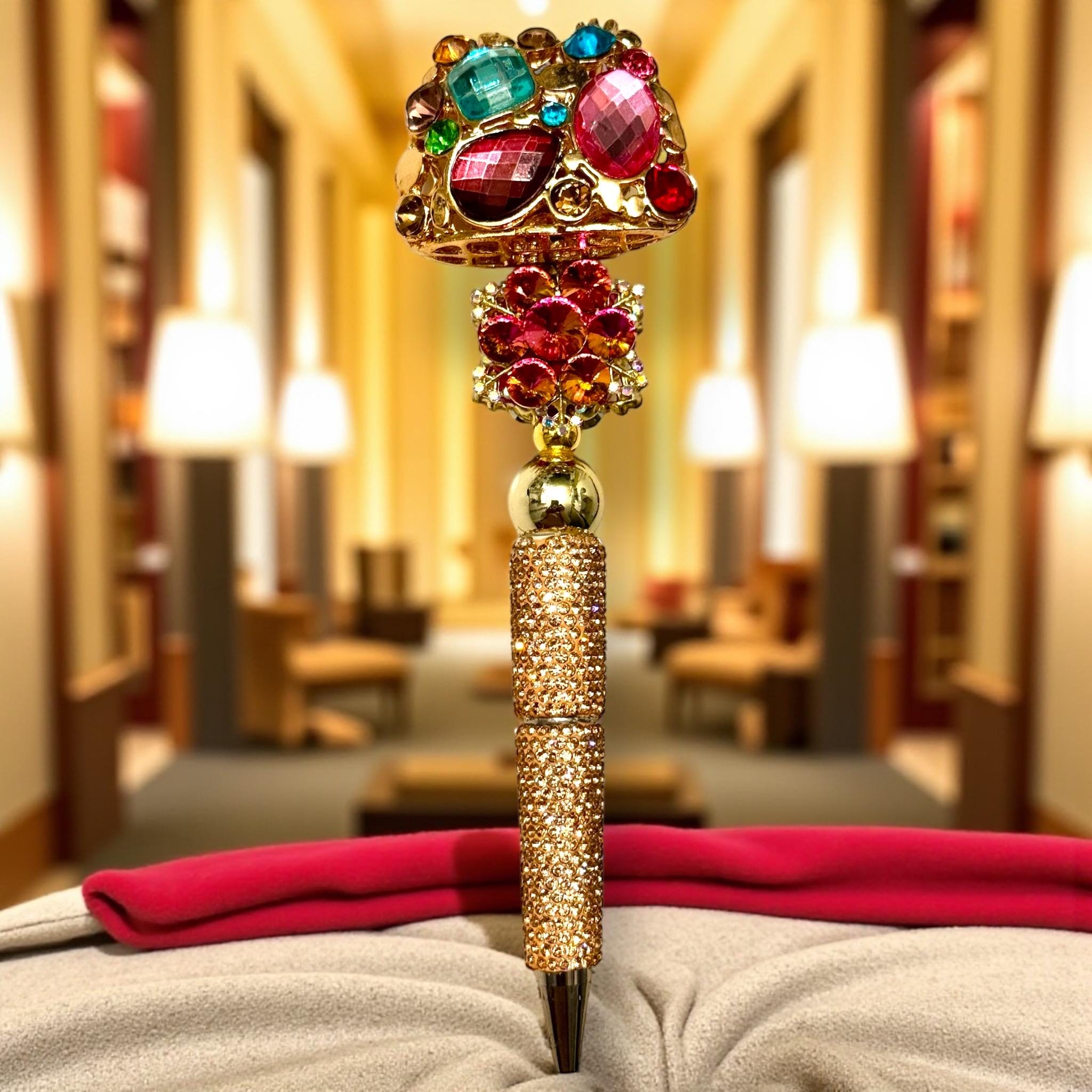 Unparalleled Elegance: Embellished with shimmering rhinestones and vibrant gems, this pen is a magnificent accessory that captivates attention.