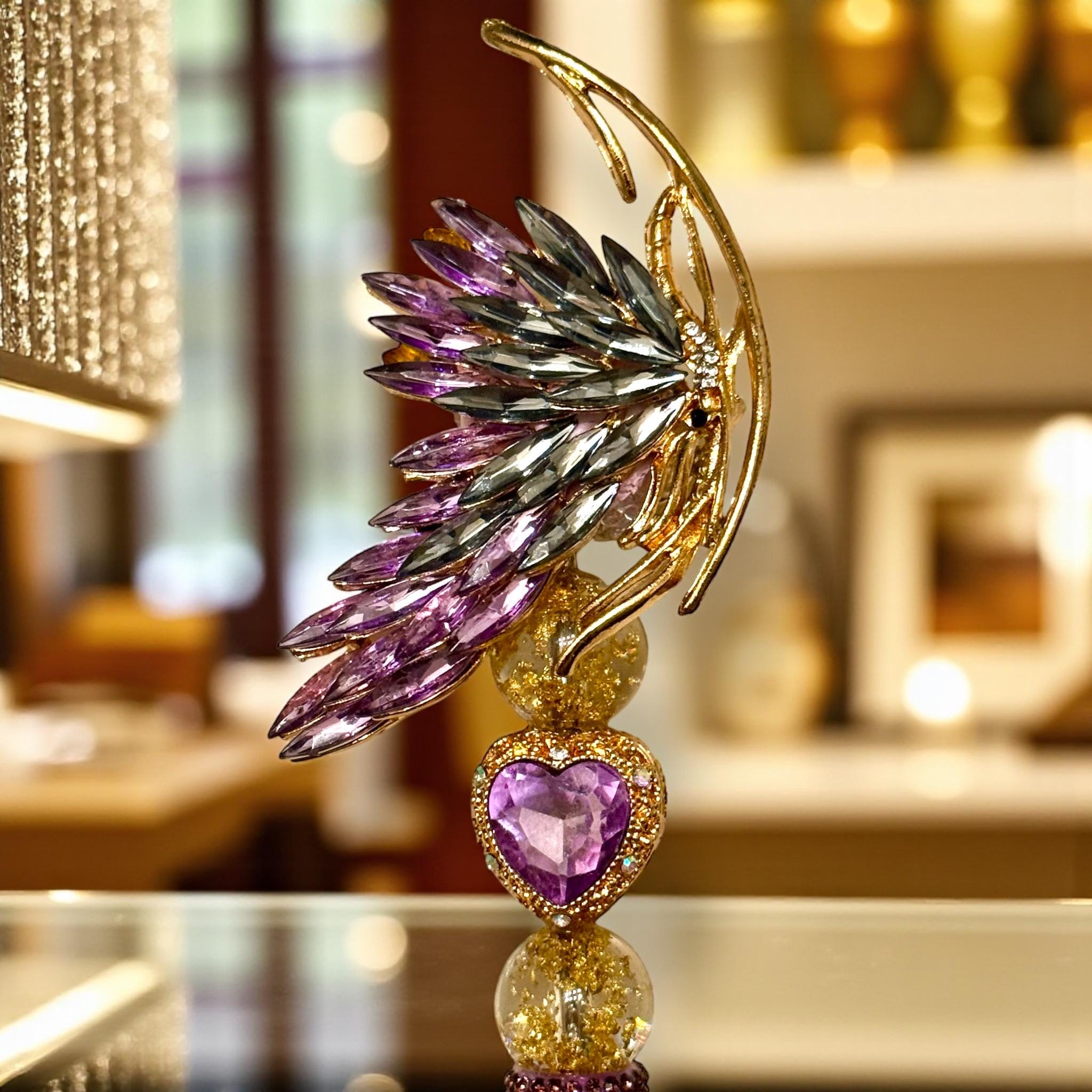 Eye-Catching Design: Features an intricate butterfly accent, capturing attention with its vibrant crystals.