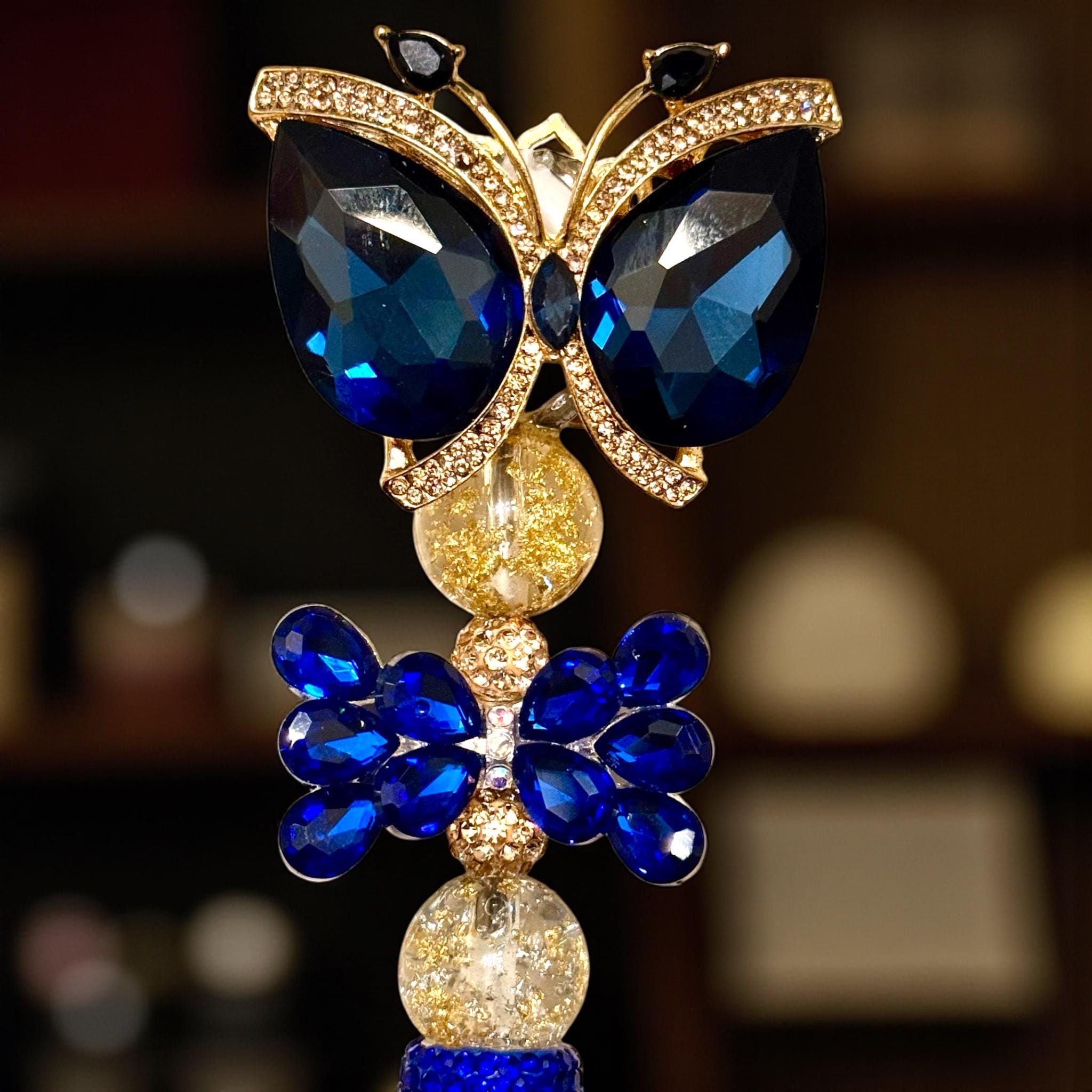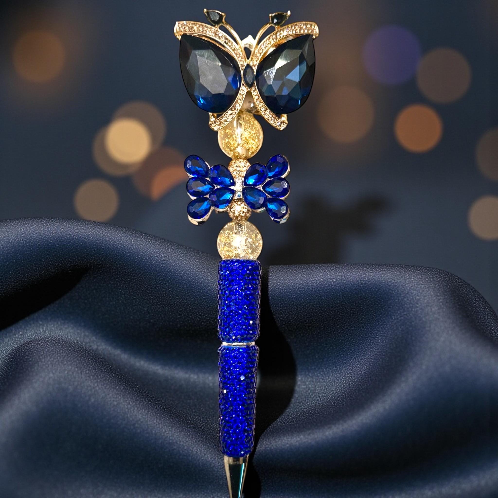 Introducing the Royal Blue Butterfly Rhinestone Pen: Where writing meets royal elegance with a sprinkle of sparkly humor! Ever tried to catch a butterfly with your bare hands? Well, this pen one-ups nature with rhinestones and a butterfly that won't flutter away at the sight of your grocery list!