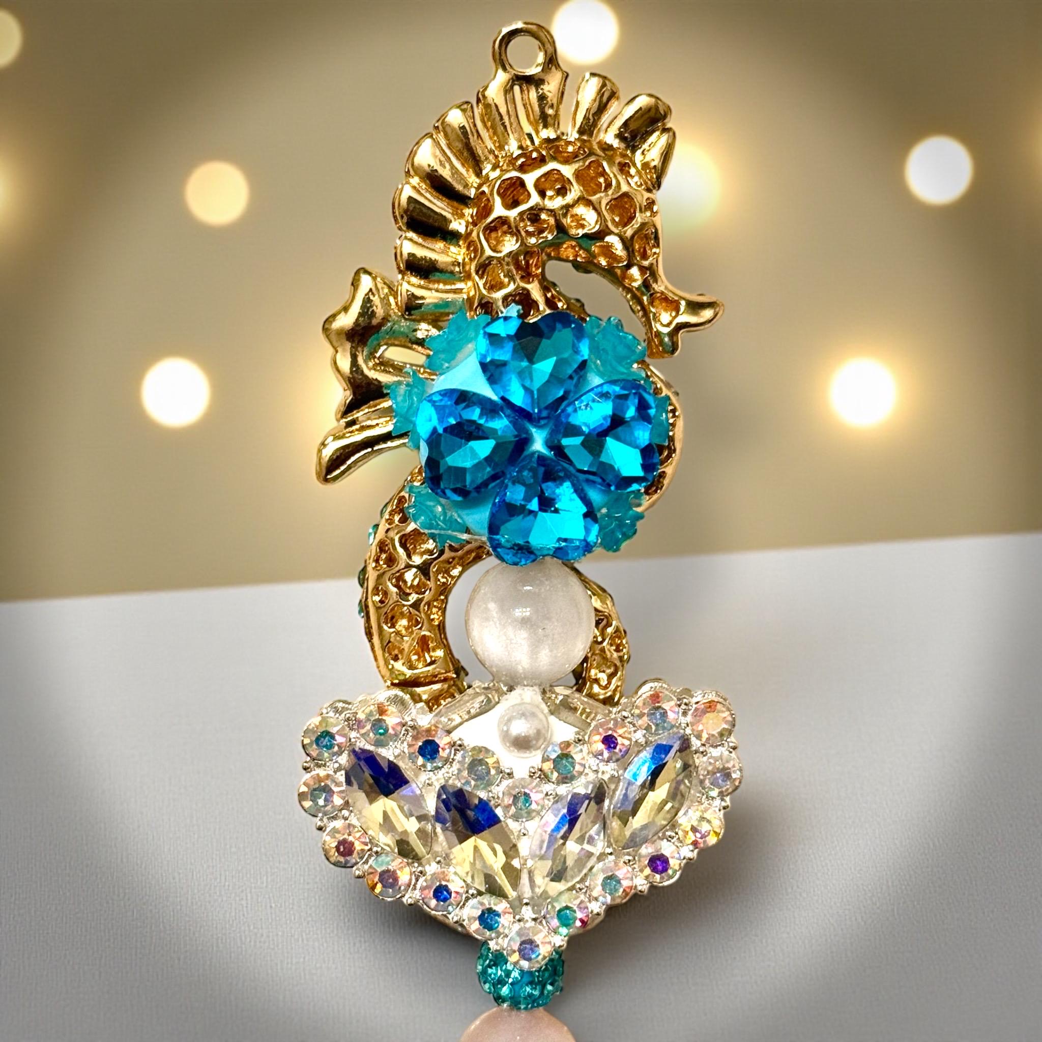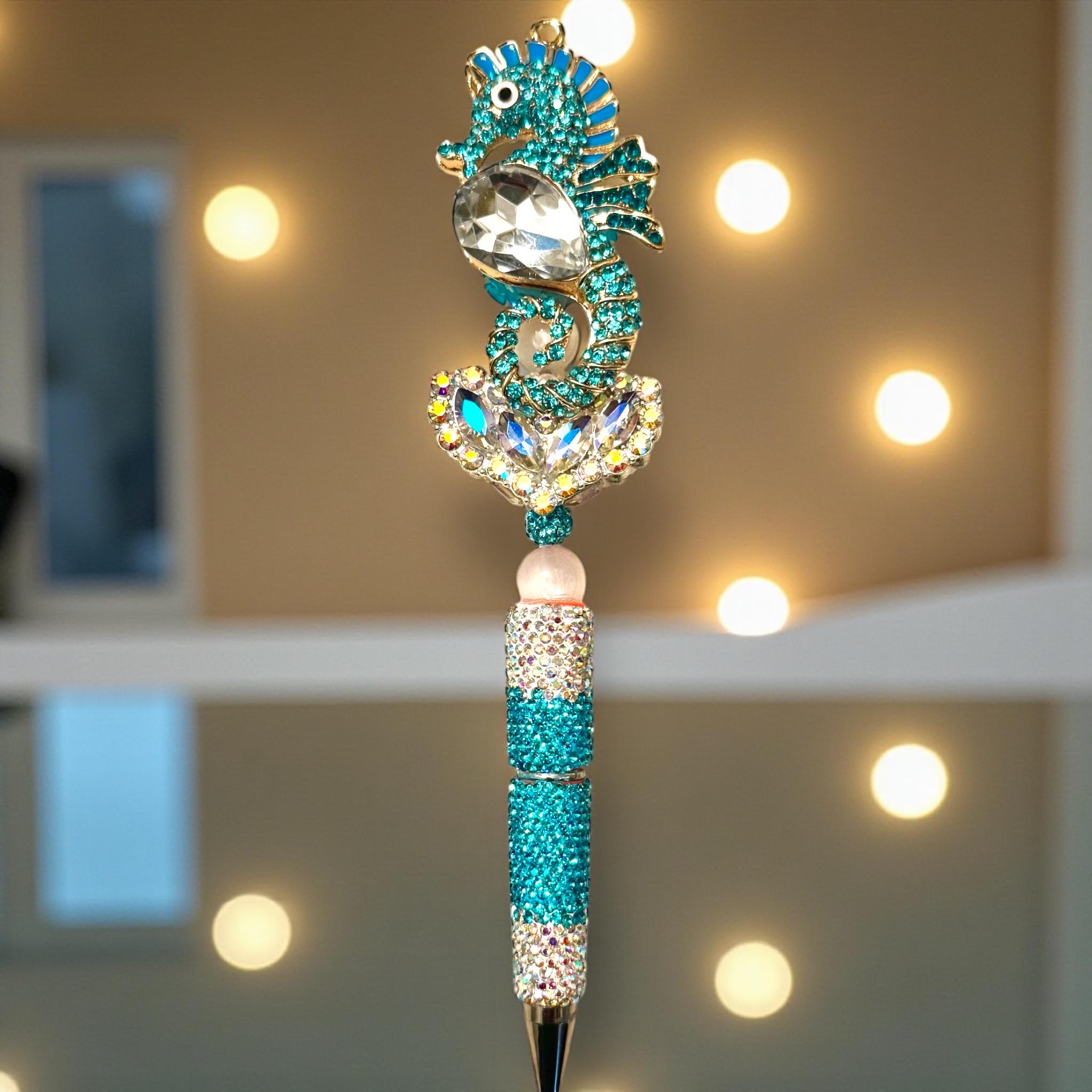 Immerse yourself in oceanic elegance with the Crystal Blue Seahorse Rhinestone Pen.