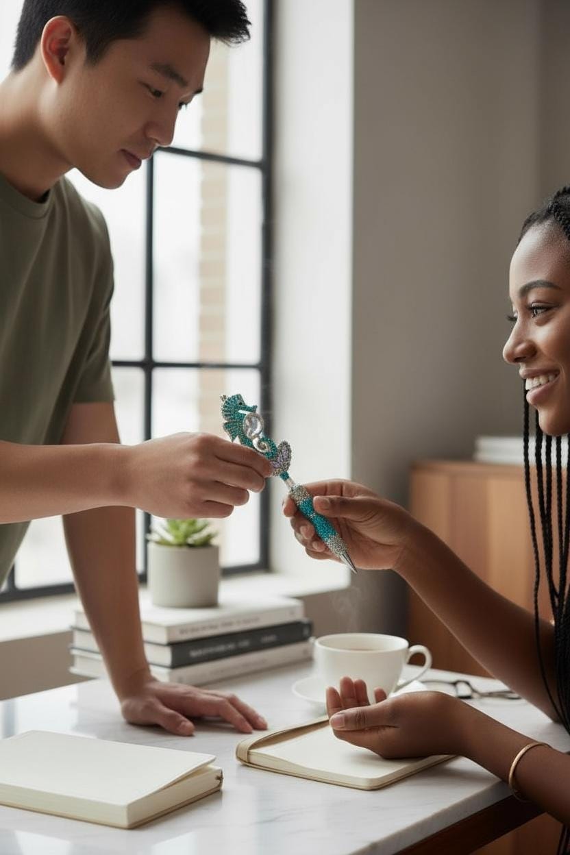 Unique Seahorse Embellishment: A symbol of grace and beauty, the seahorse accent elevates this pen to an exquisite work of art.
