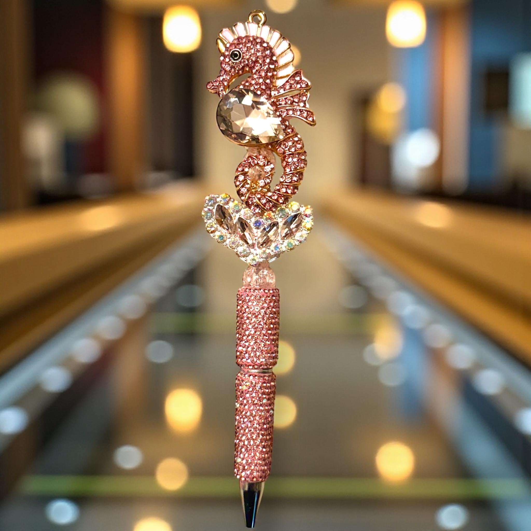 Exquisite Design: Inspired by the enchanting beauty of the sea, the seahorse design is adorned with shimmering rhinestones that catch every glint of light. Perfectly sculpted, it will make you feel like holding a piece of oceanic magic every time you write.
