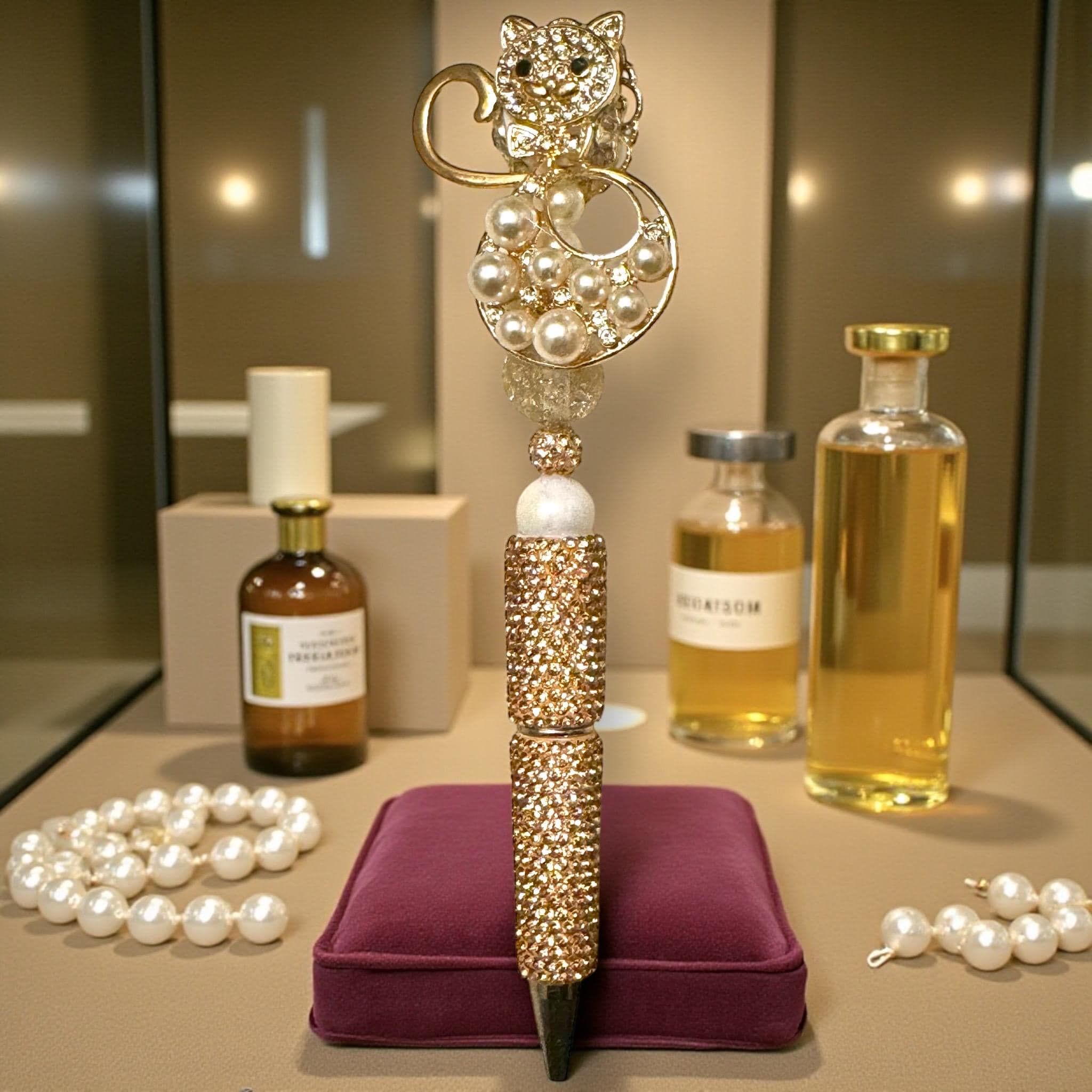 Spice up your writing experience with the Elegant Pearl and Rhinestone Kitty Pen, where sophistication meets charm in every word you weave. This exquisite pen transforms ordinary writing moments into extraordinary occasions, making it a perfect gift or indulgent treat for yourself.