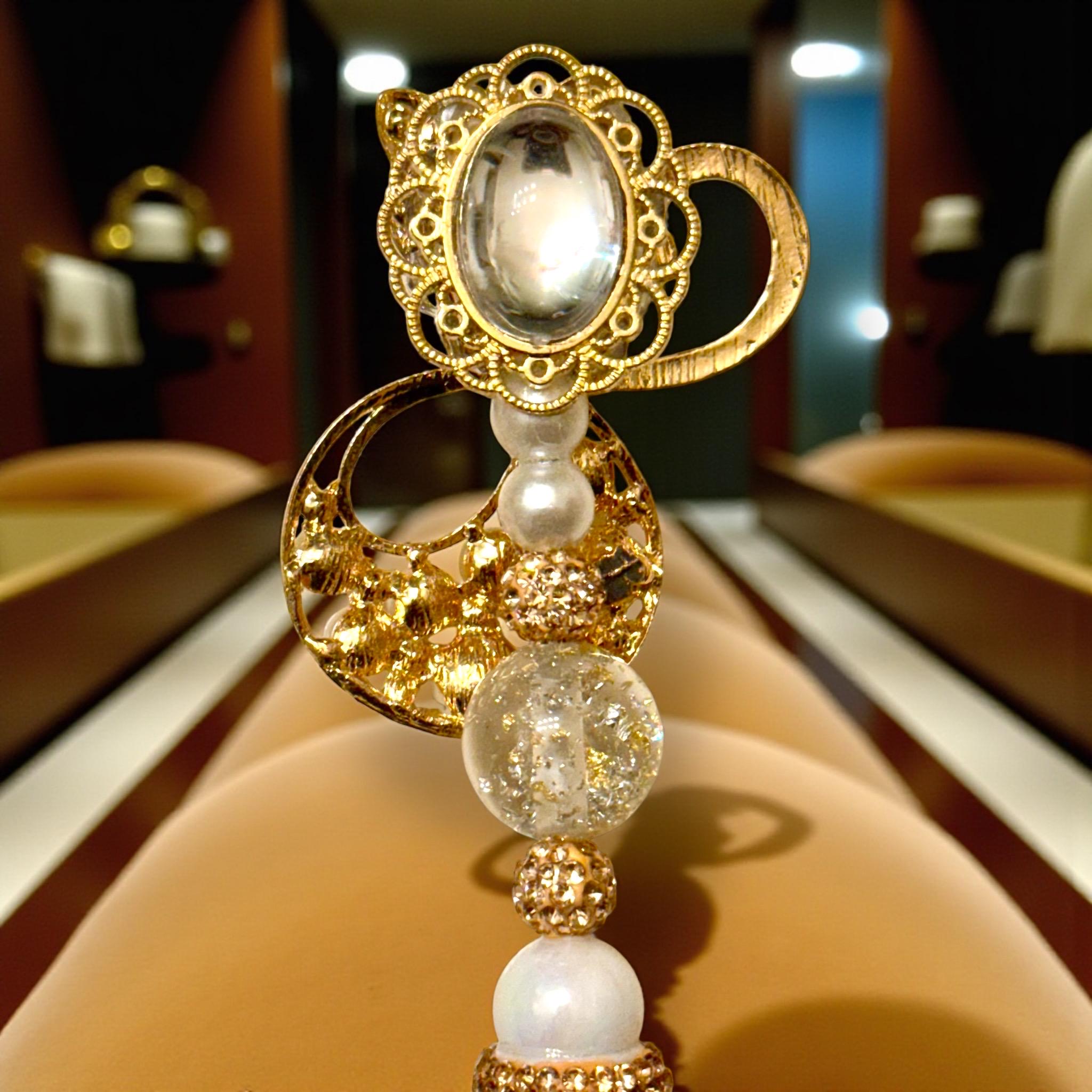 Luxurious Design: Embellished with dazzling rhinestones and shimmering pearls for a truly elegant aesthetic.