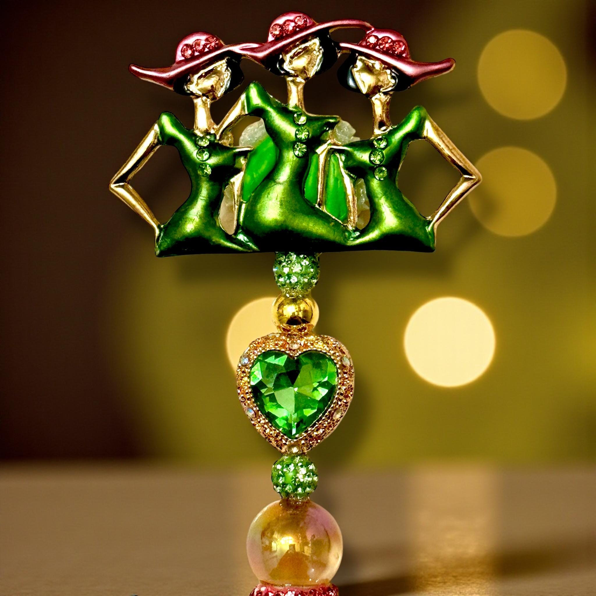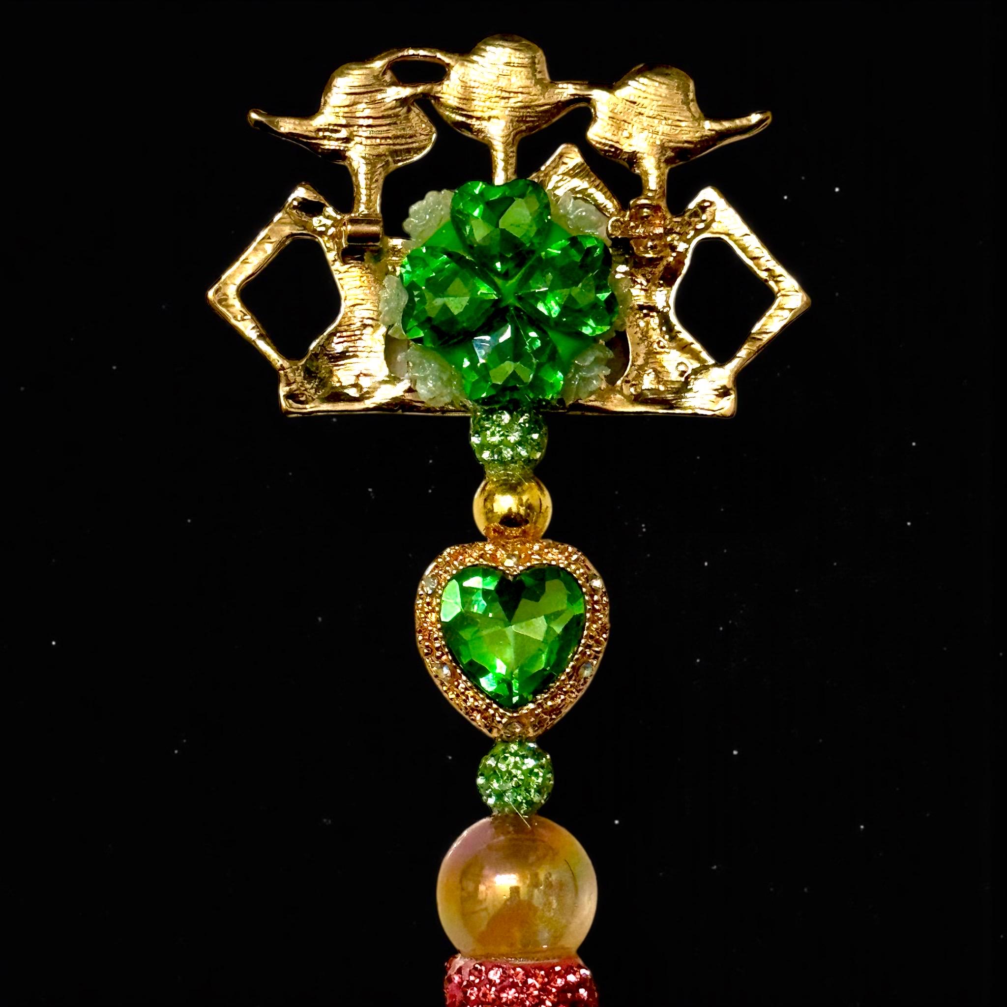 Heartfelt Elegance: Adorned with a magnificent green heart jewel at its center, surrounded by golden and green gems, this pen promises to catch every eye in the room.
