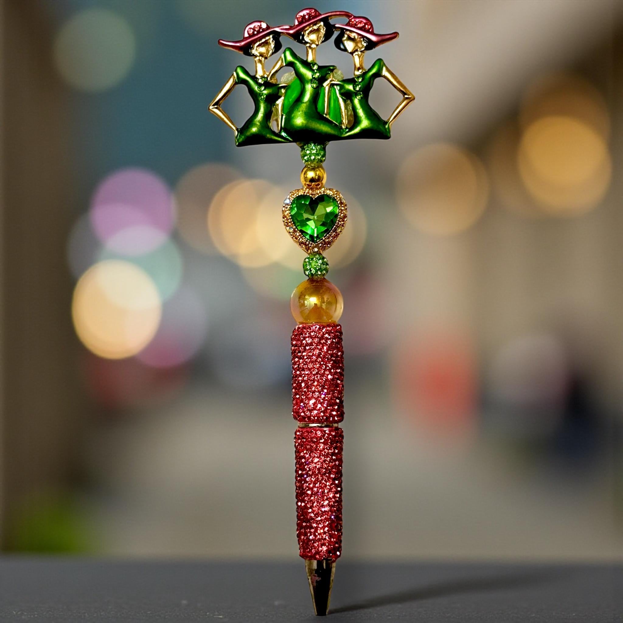 Exquisite Design: Celebrate femininity with the pen's beautiful emerald green ladies figurine, crowned by sparkling red hats. It’s a nod to sophistication and grace, making every jot a stylish affair.