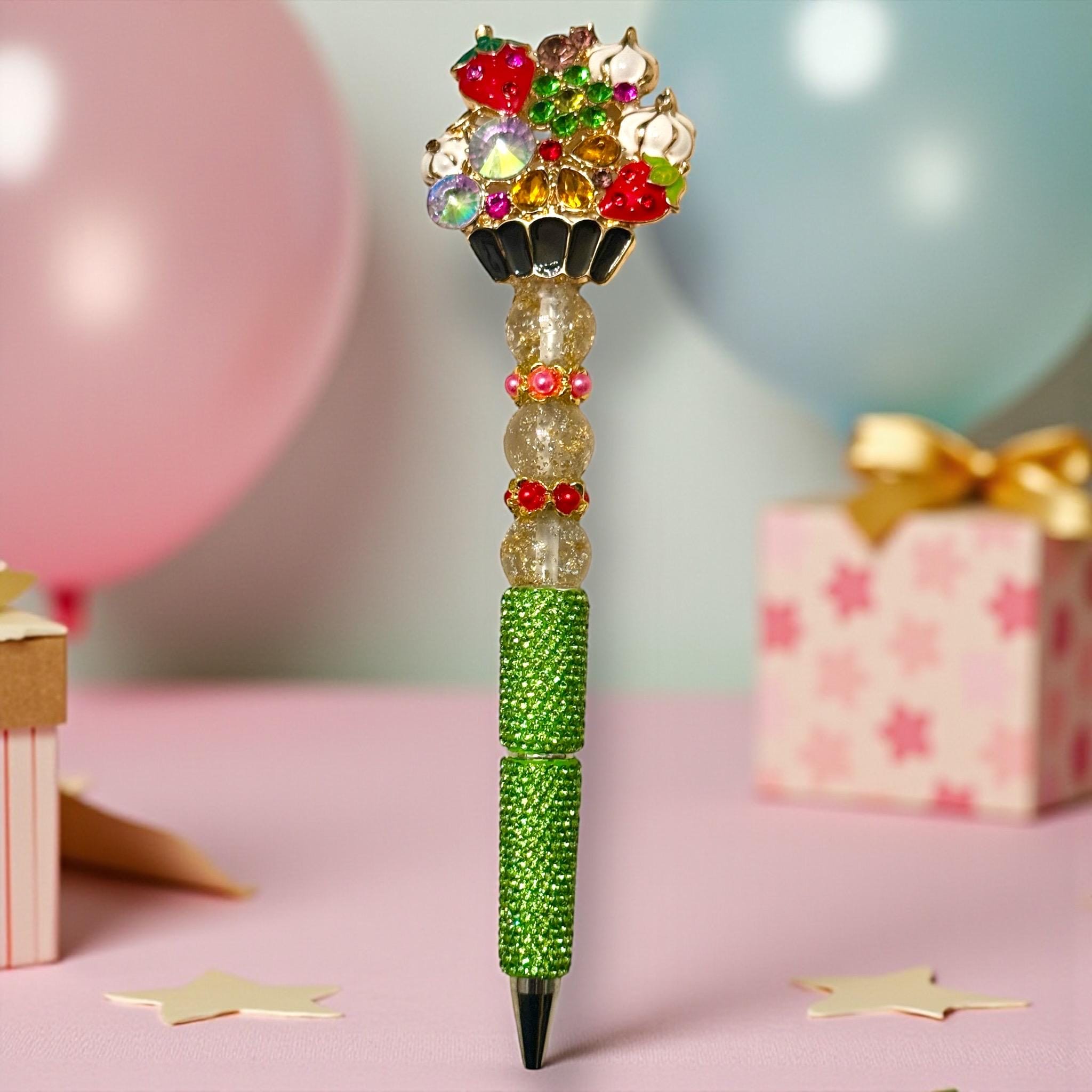 Colorful Jeweld Cupcake Rhinestone Pen: Jeweled Desk Accessory