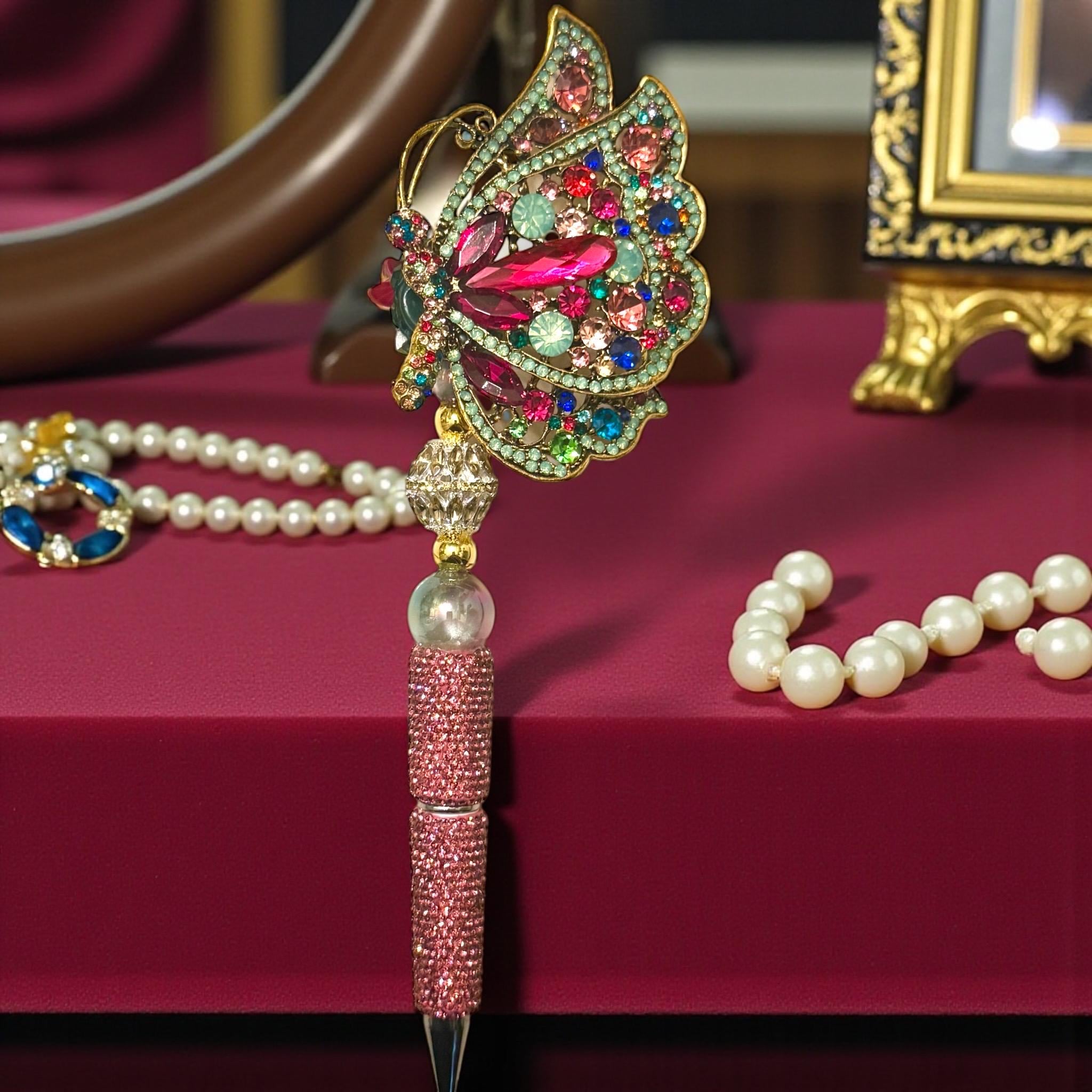 Introducing the Jeweled Butterfly Rhinestone Pen: the writing tool that’s more fabulous than your last party outfit! Why settle for ordinary pens when you can have one that's as enchanting as a fairytale? This pen won't just sit in your drawer; it will flutter its way into your heart!