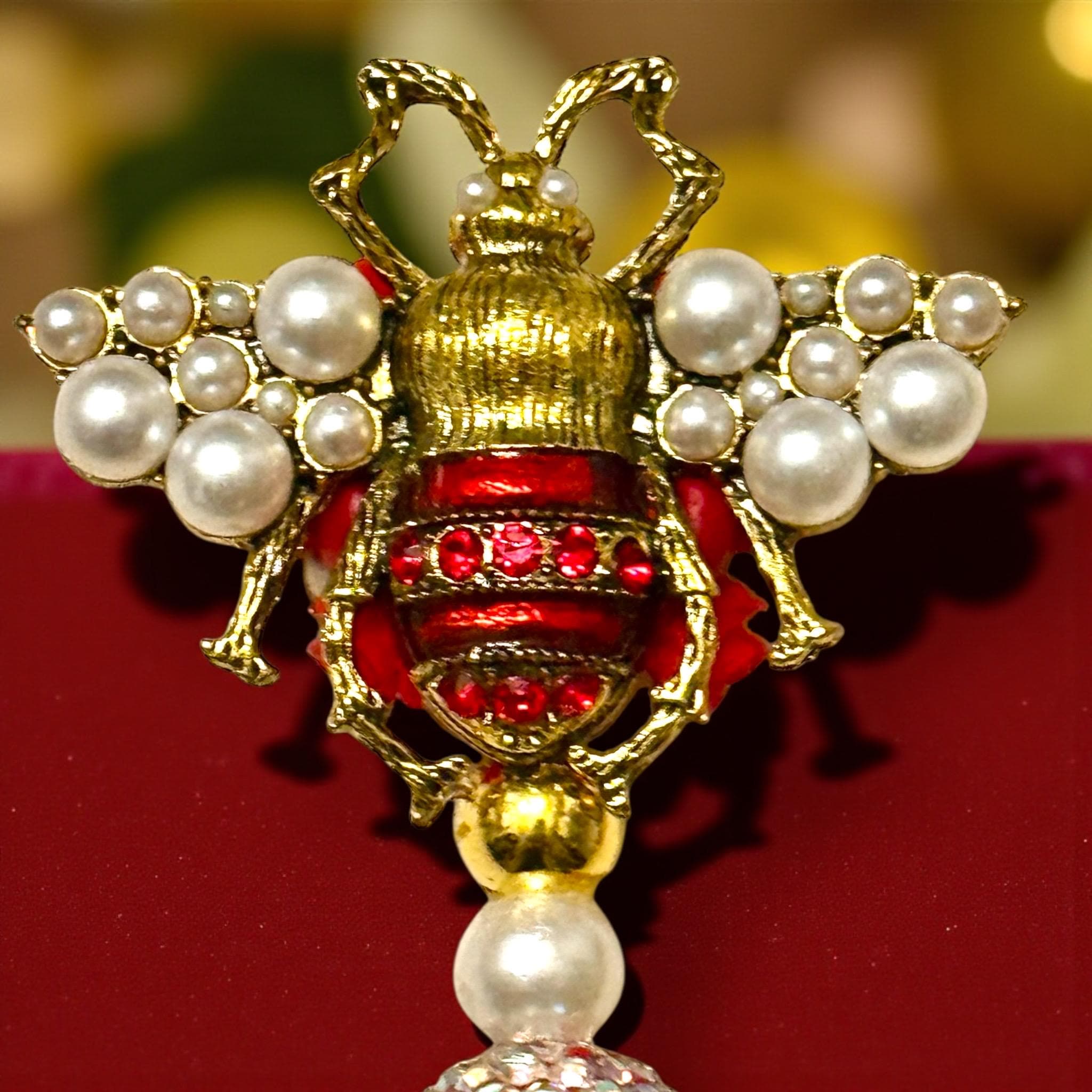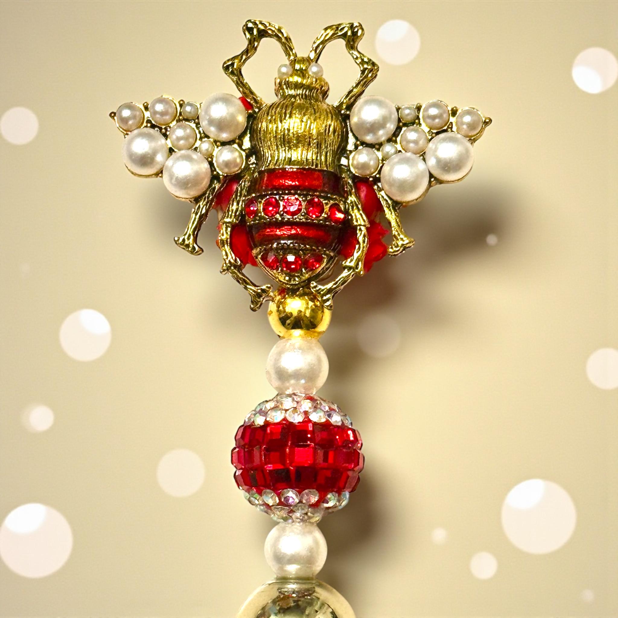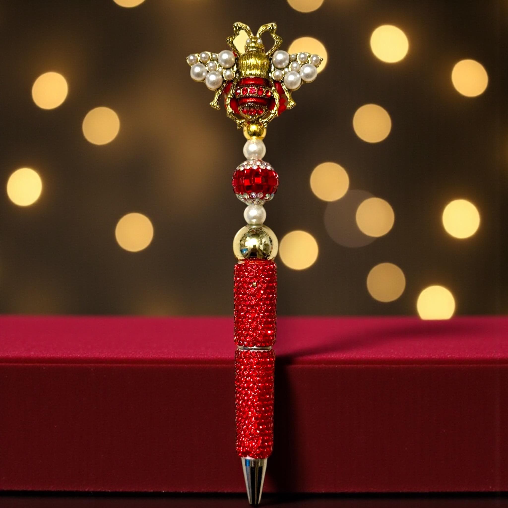 Elevate your writing experience with the Royal Red Pearl and Rhinestone Bee Pen — a masterpiece of elegance and extraordinary design that transforms everyday tasks into royal delights.