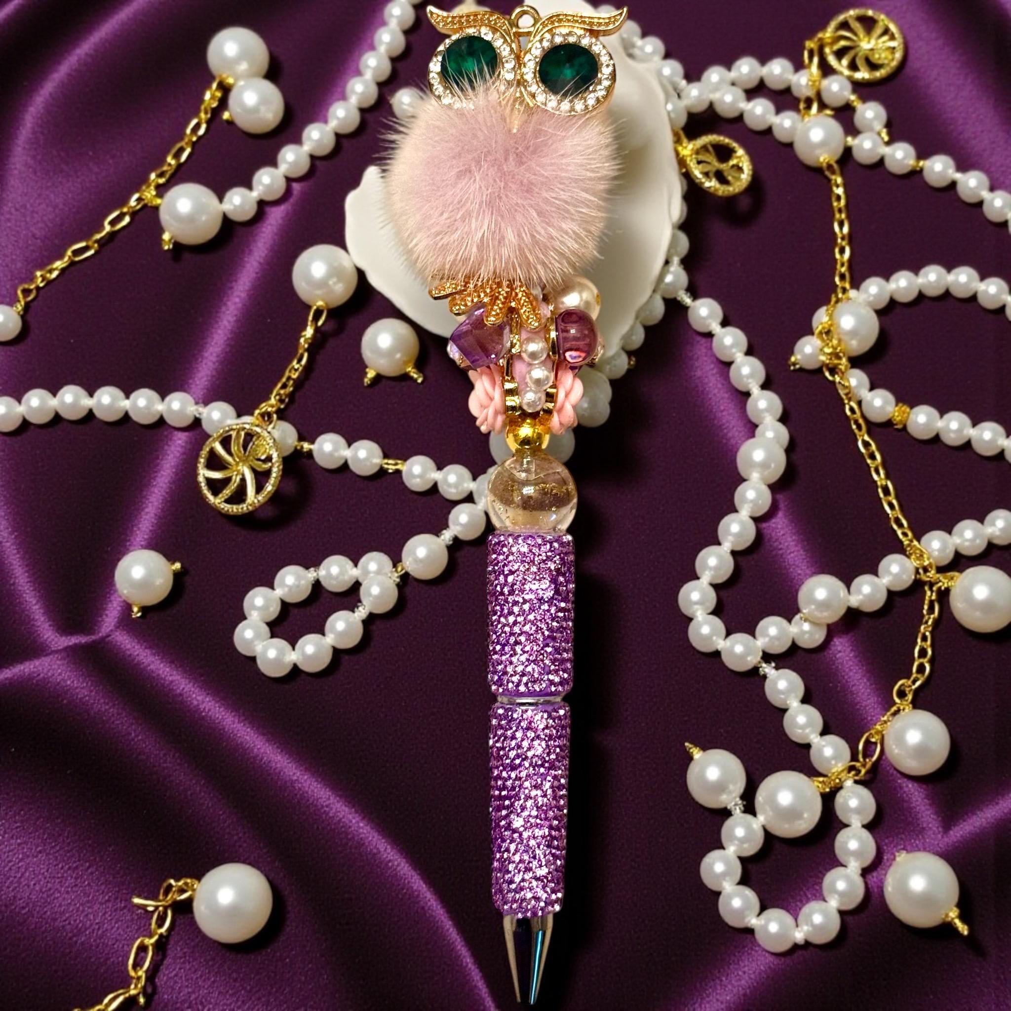 The Purple Fluffy Owl Rhinestone Pen - Make Wisdom a Writing Companion!