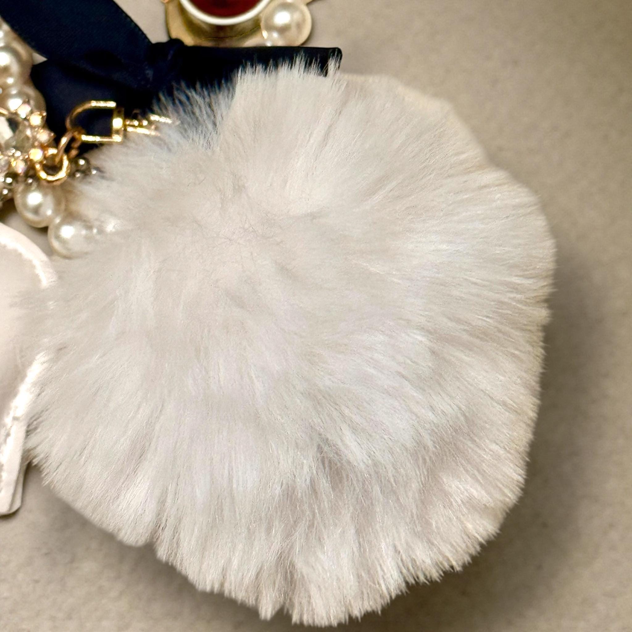 Luxurious Texture: The plush fur pom adds a whimsical flair, offering a soft and tactile experience that complements its sophisticated design.