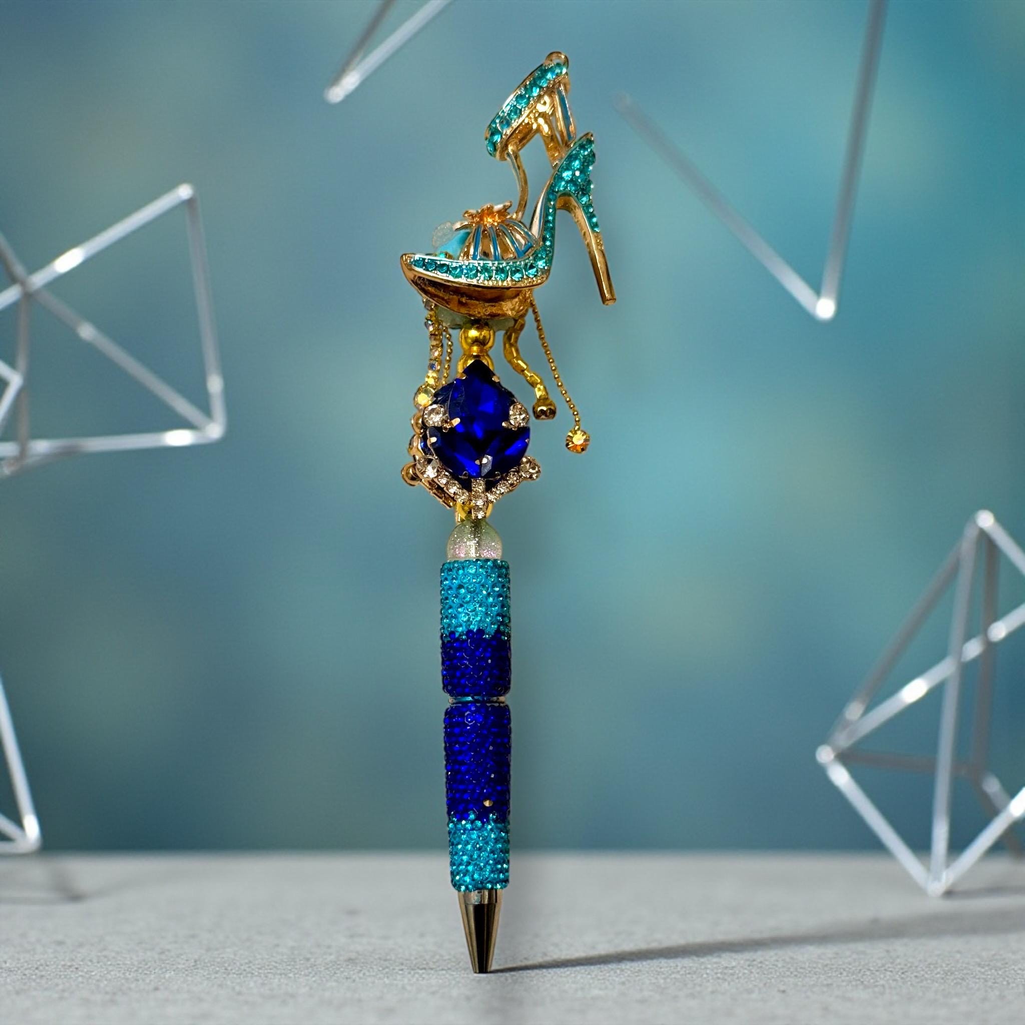 Introducing the Blue Stiletto Rhinestone Pen—because who says your writing instrument can't be as glamorous as your shoe collection? This pen is so dazzling, it might just strut off the desk and onto the runway!