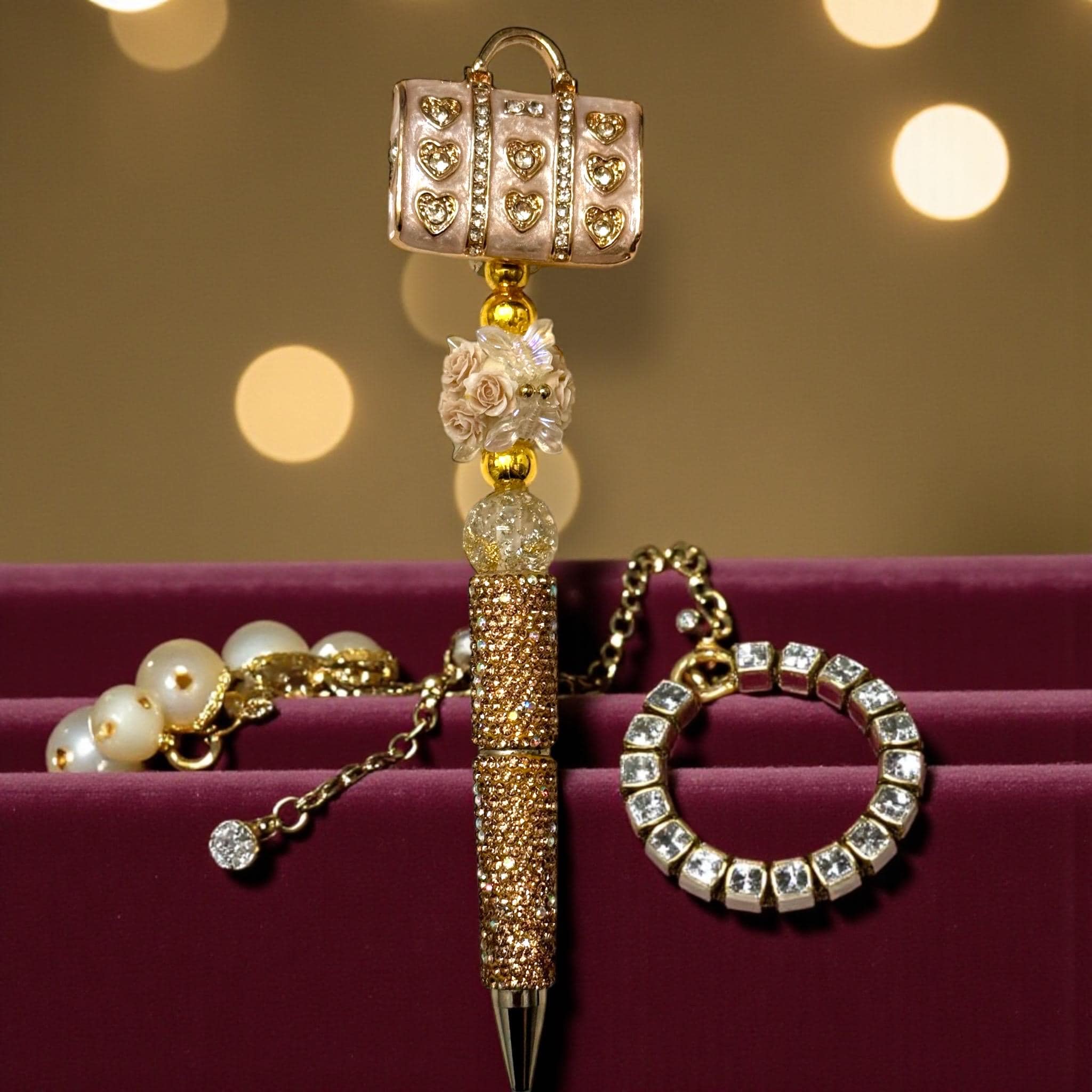 Unlock the luxury experience with the Golden Rhinestone Handbag Pen—where style meets substance impeccably.
