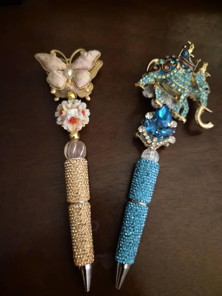 Elegant Design: Adorned with a delicate pink butterfly and sparkling rhinestones, the pen is a masterpiece that adds charm to your desk.