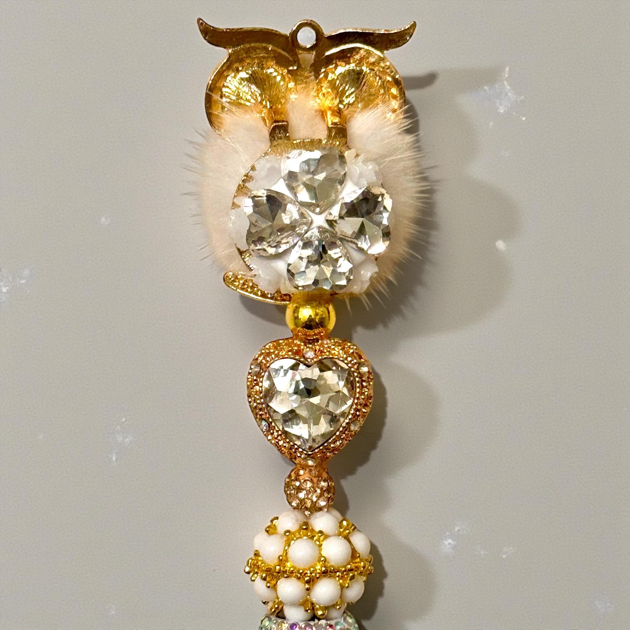 White Fluffy Owl Rhinestone Pen: Jeweled Desk Accessory