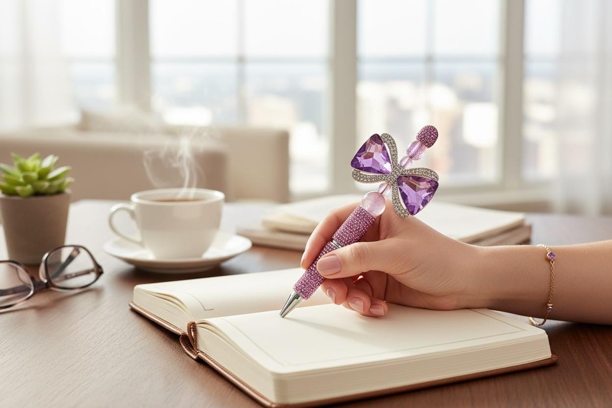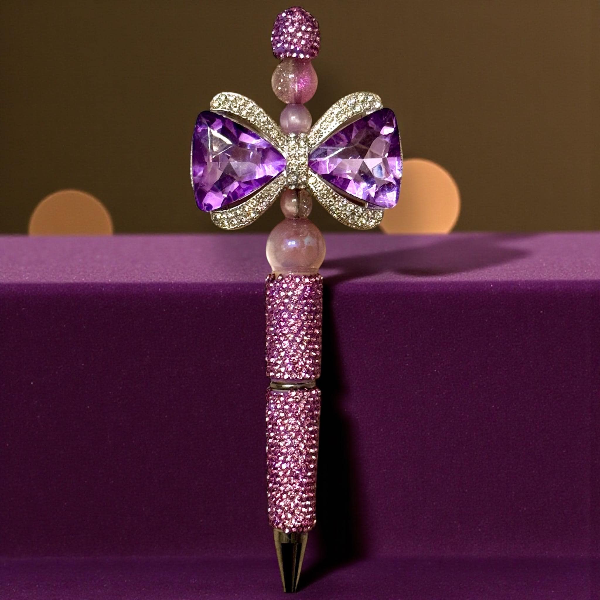 Ever dreamt of signing treaties or ordering your loyal subjects to bring you snacks in style? Our Large Double-Sided Purple Rhinestone Bow Pen is here to turn your mundane scribbles into royal decrees!