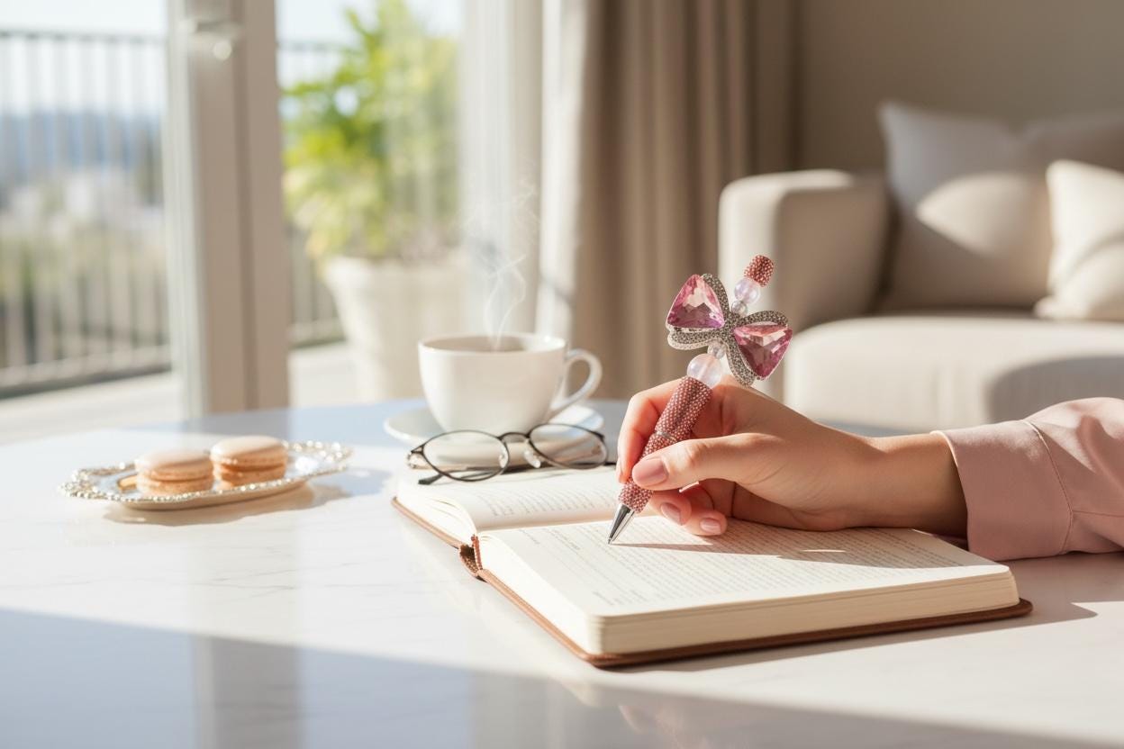 Striking Design: Adorned with sparkling pink rhinestones, the pen dazzles at any angle, ensuring you never go unnoticed.