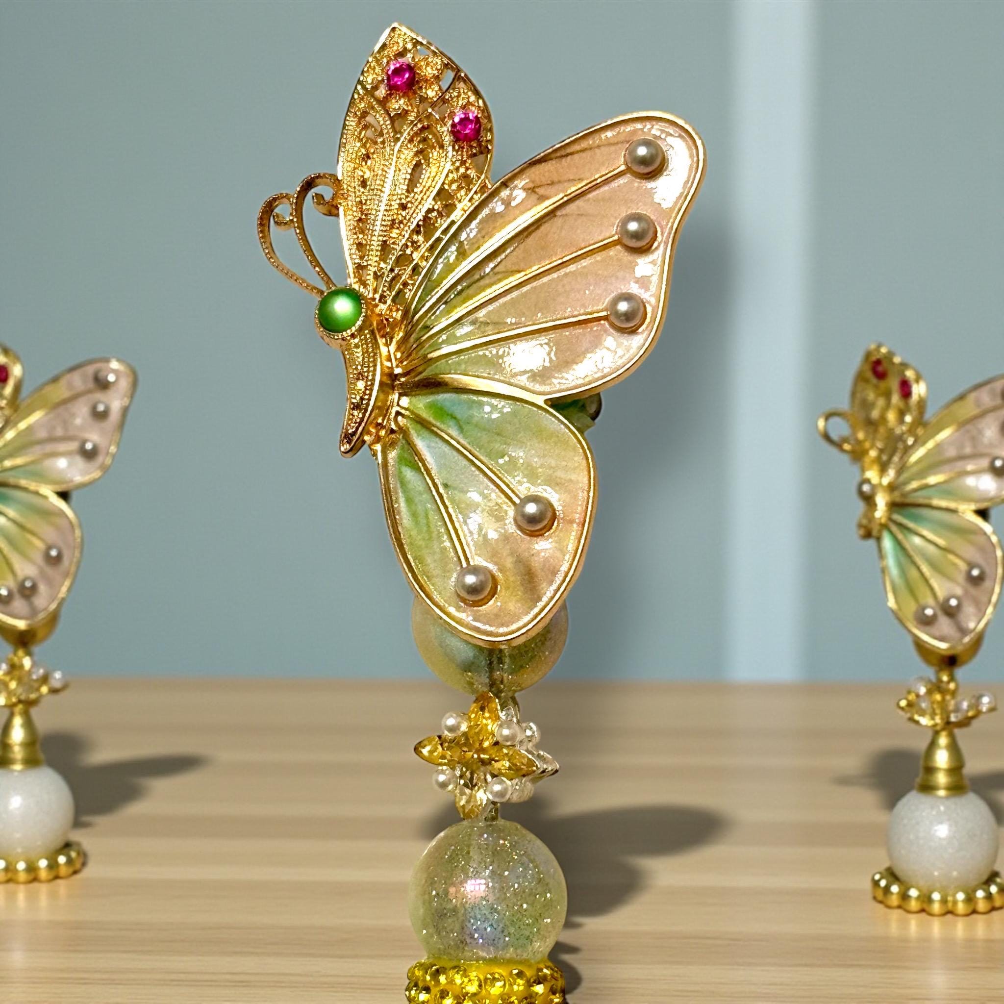 Discover the enchantment of our Gorgeous Enamel Yellow and Green Butterfly Rhinestone Pen. Whether you're jotting down notes or signing important documents, this exquisite pen transforms everyday tasks into moments of elegance.
