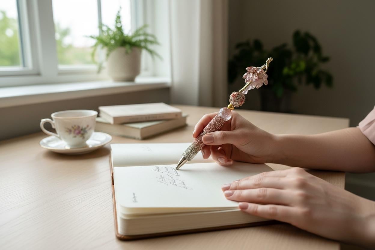 Luxurious Materials: Crafted with high-quality pink rhinestones that catch the light beautifully, this pen is a testament to sophistication.