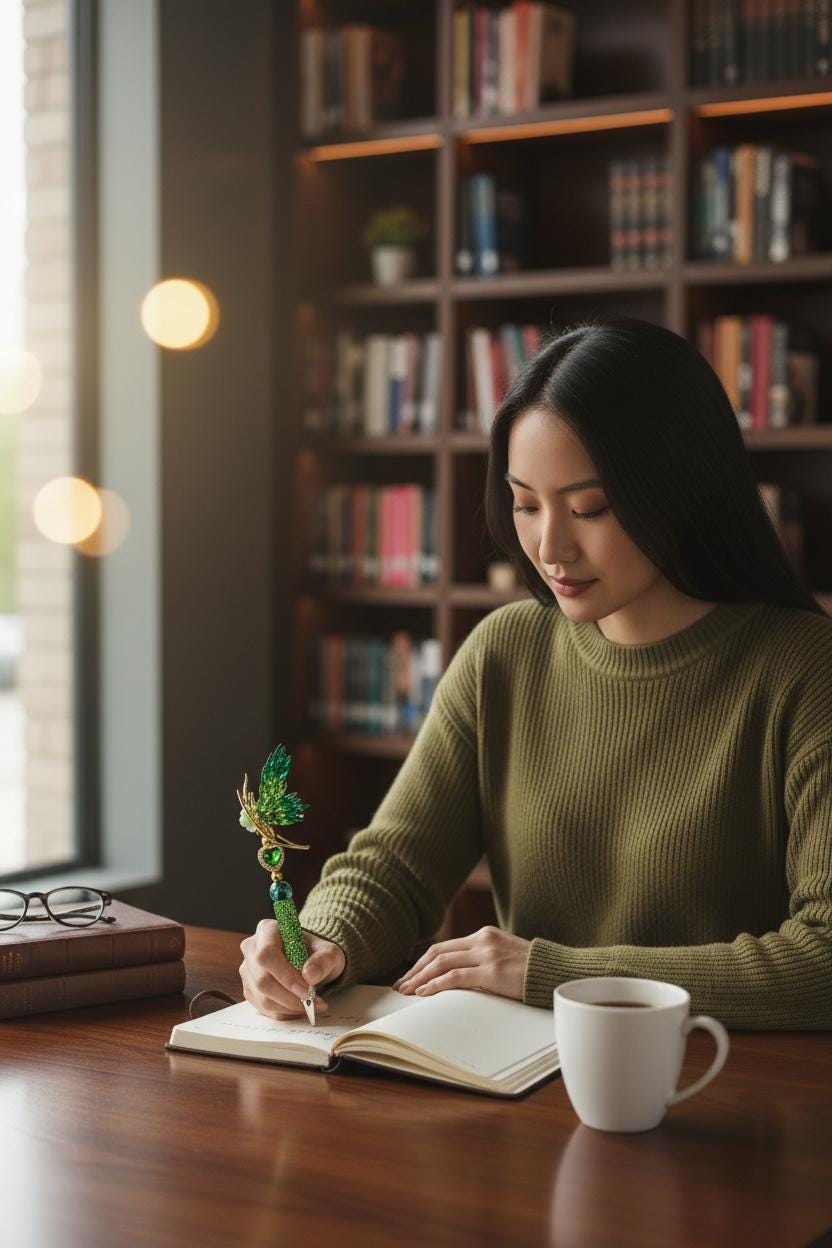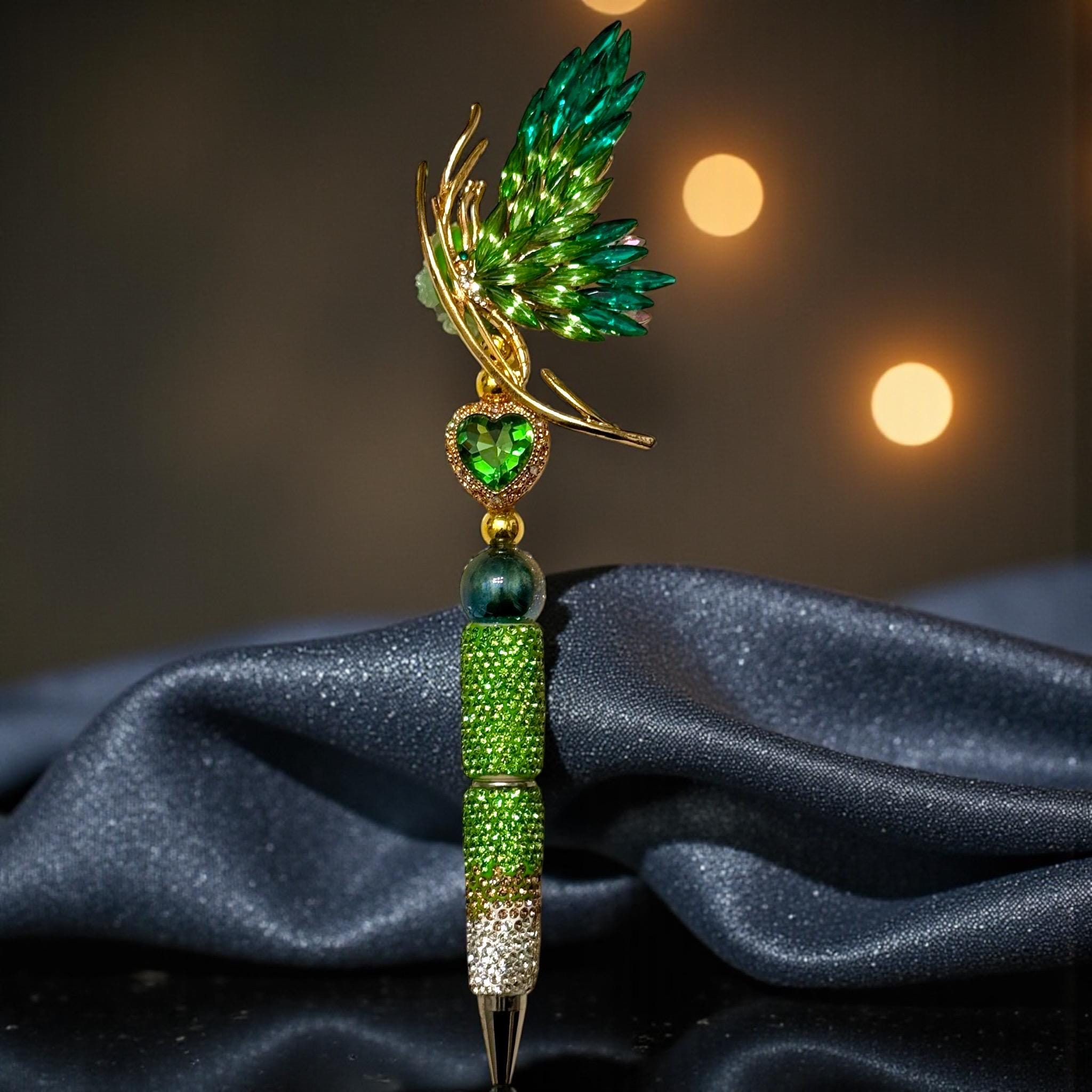 Enchanting Design: Adorned with vibrant green rhinestones and a stunning butterfly motif, this pen is a celebration of beauty and sophistication.