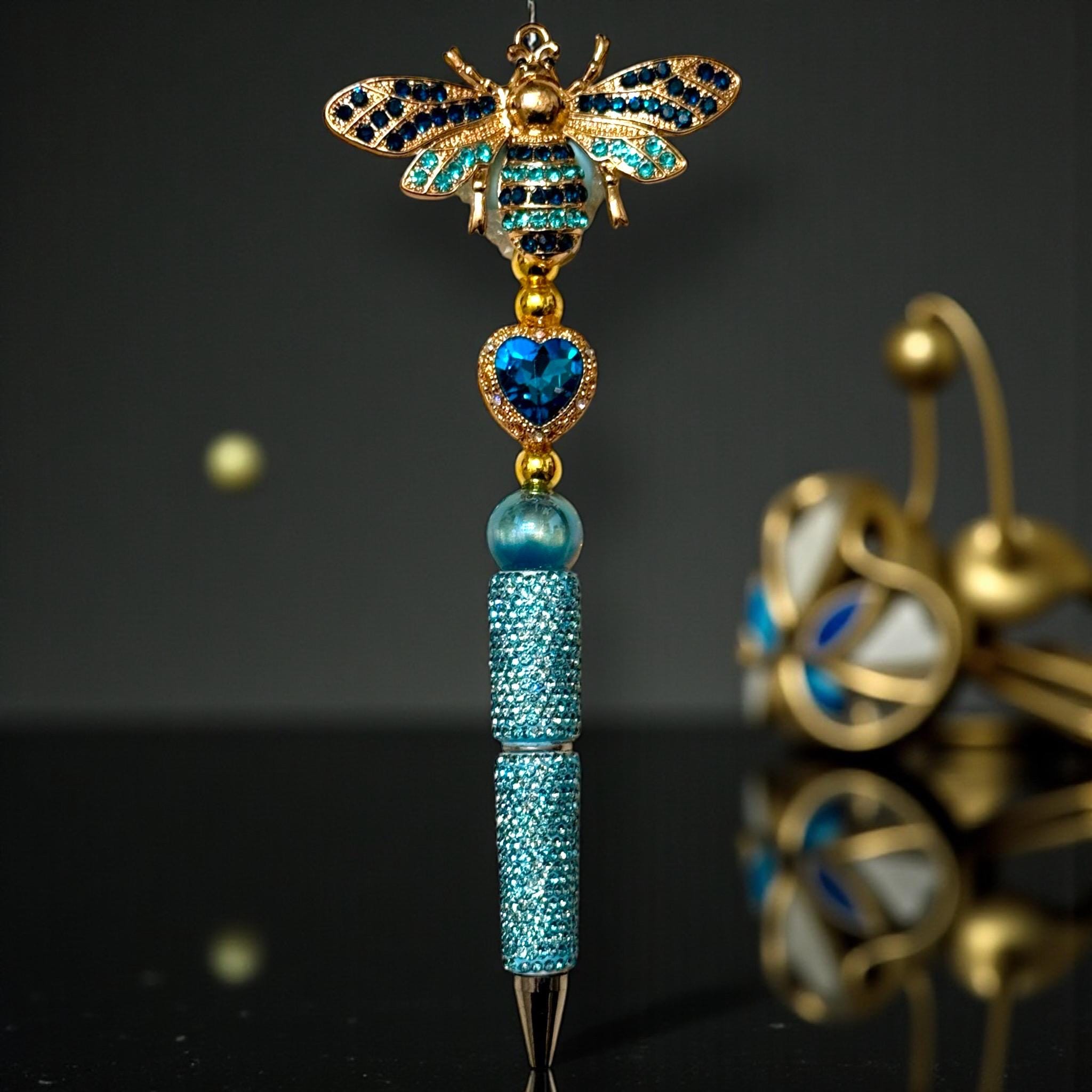 Unleash your creativity with the exquisite Shades of Blue and Gold Rhinestone Bee Pen. This stunning writing instrument transforms everyday tasks into moments of elegance and inspiration.
