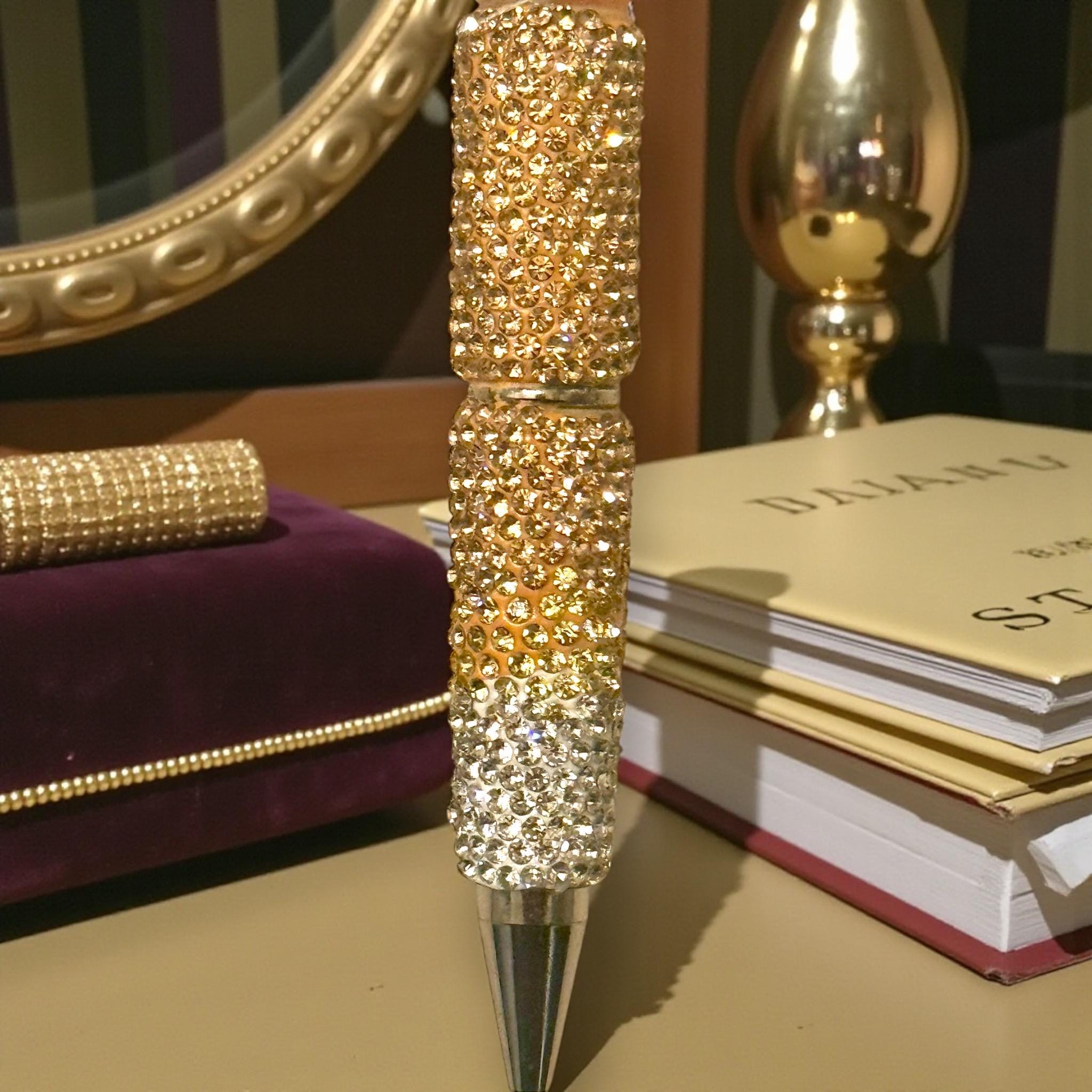Golden Glam: Drenched in rhinestones, this pen shines brighter than your future (or at least it hopes so)!