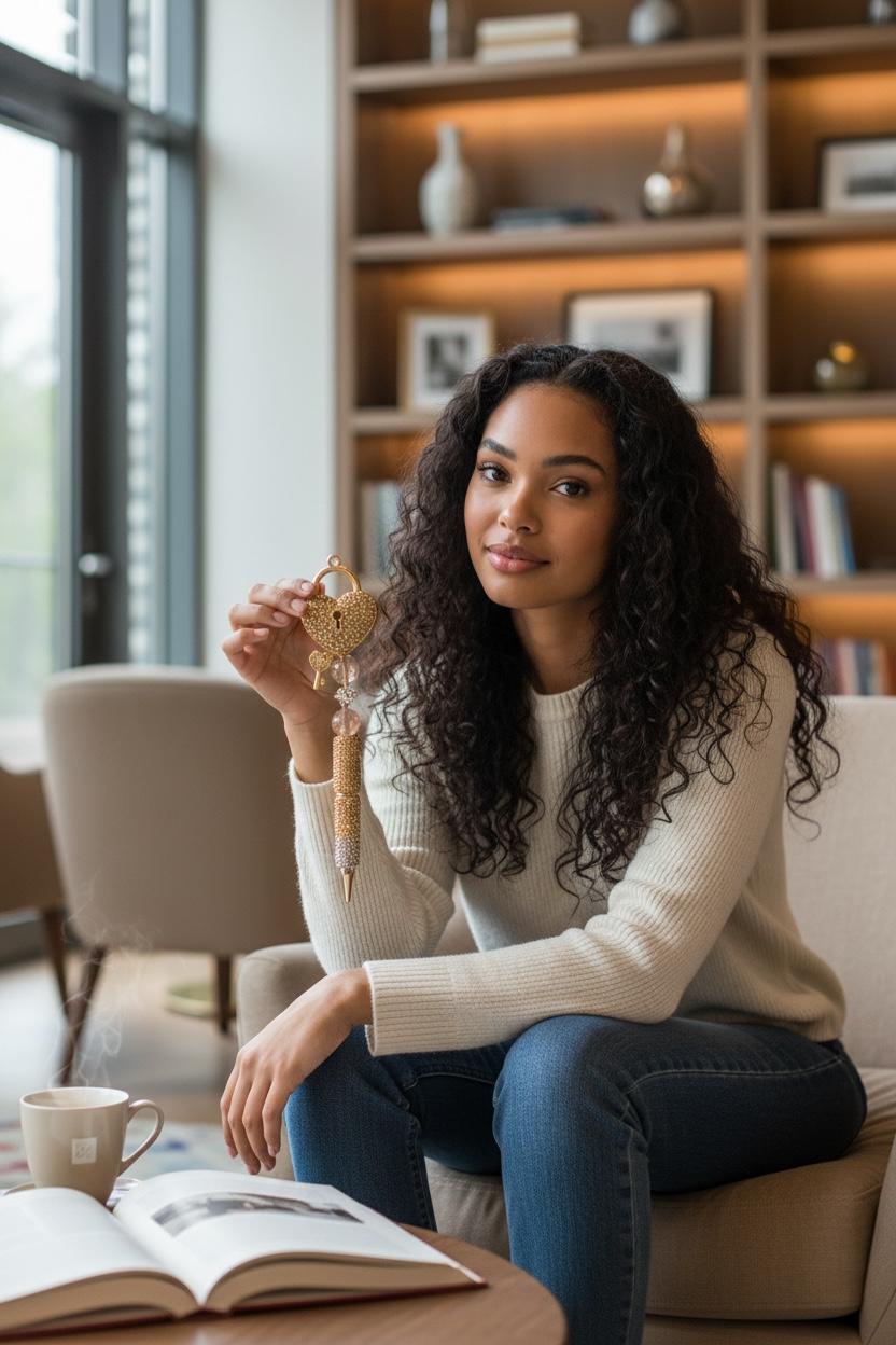 Looking for a writing instrument that’s more charming than Prince Charming and shinier than the top of your head after yoga? Meet the Key to My Heart Golden Rhinestone Pen—your new best friend in the world of delightful scribbles and royal doodles.