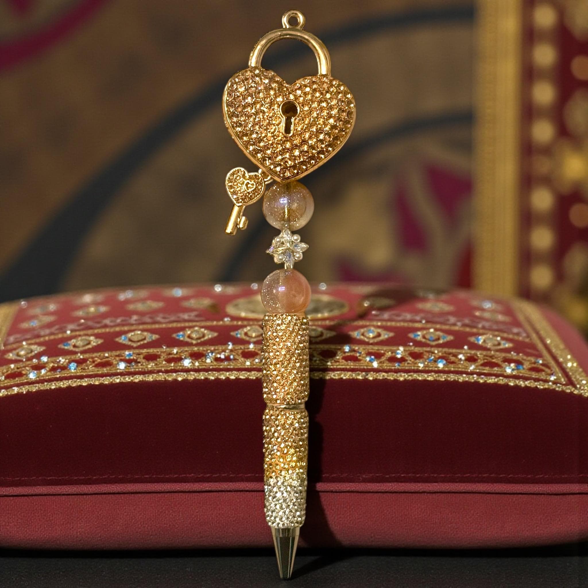 Unlock Your Imagination with the Key to My Heart Golden Rhinestone Pen