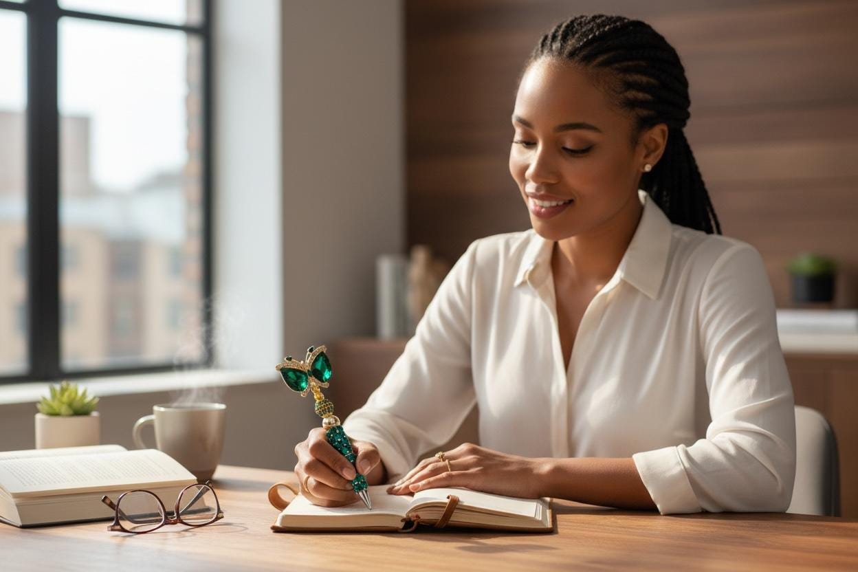 Discover the exquisite allure of the Crystal Green Butterfly and Heart Pen, a masterpiece of elegance that transforms everyday writing into a luxurious experience. Embrace the joy of creativity with a pen designed for those who appreciate beauty and sophistication.