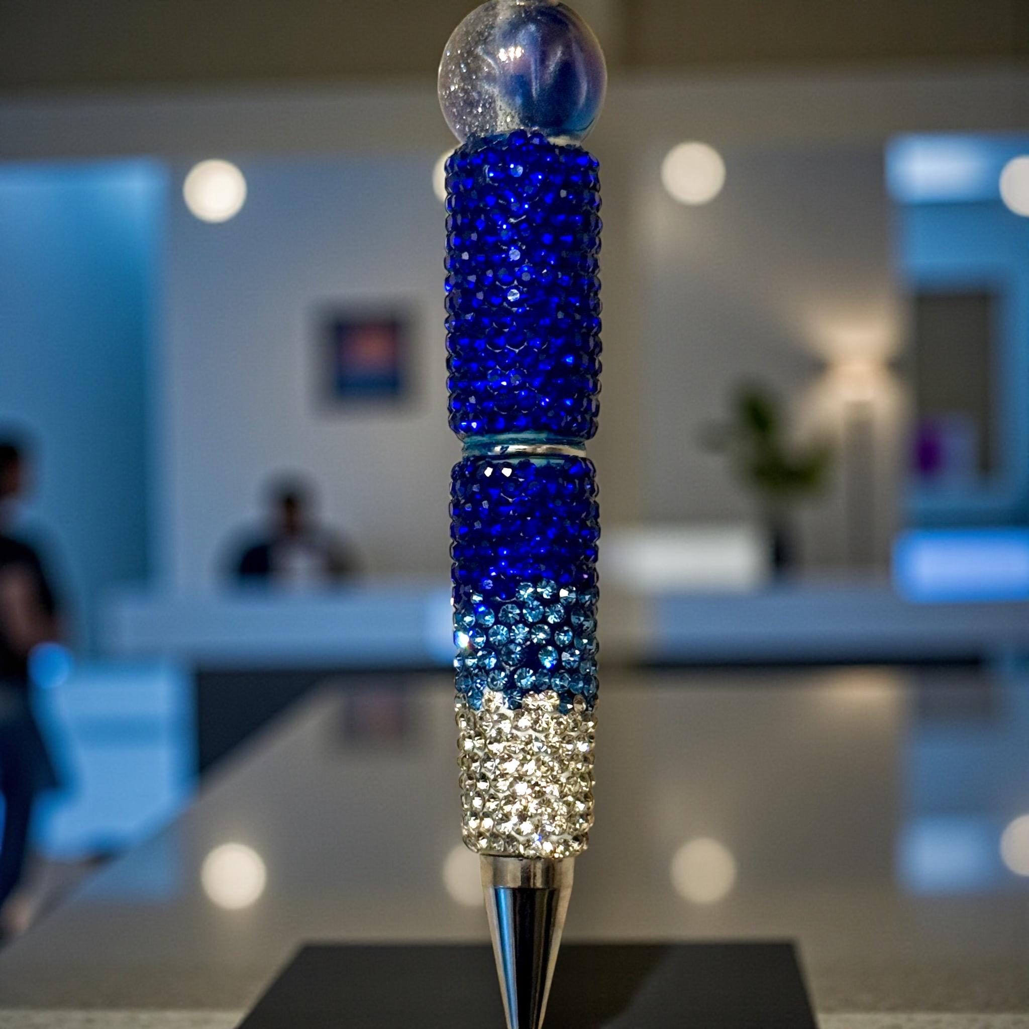 Striking Design: Featuring a dazzling sapphire blue acrylic bow adorned with rhinestones, this pen transforms your writing into an elegant affair. The glimmering rhinestones catch the light, making each moment of use a glamorous experience.