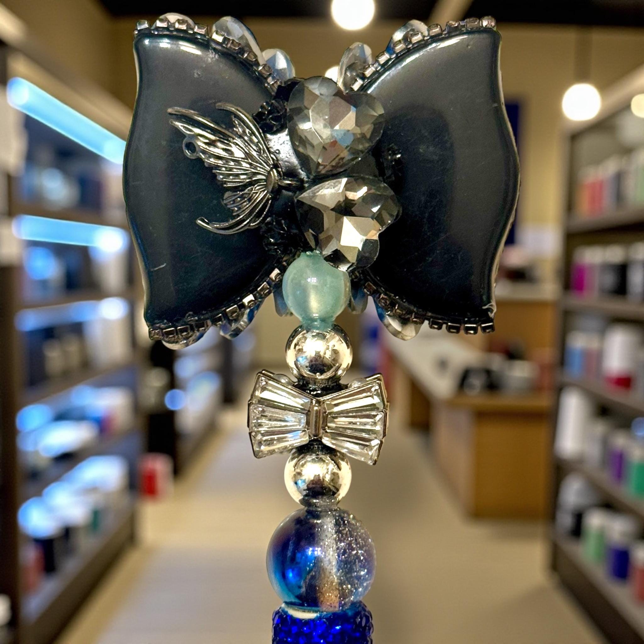 Unveil sophistication and style every time you write with our Sapphire Blue Acrylic Bow Bling Rhinestone Pen. Perfect for the discerning individual who appreciates luxury in the fine details. This isn’t just a pen—it’s a statement piece.