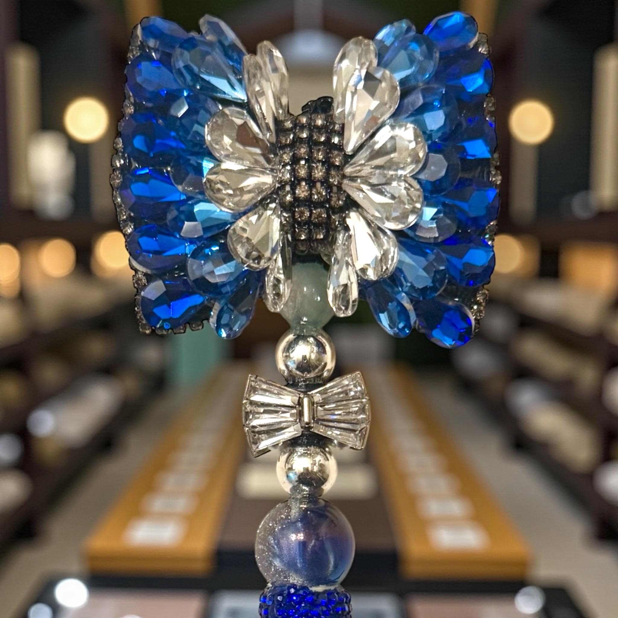 Embrace the blend of functionality and luxury—turn everyday writing into a majestic spectacle with our Sapphire Blue Acrylic Bow Bling Rhinestone Pen!