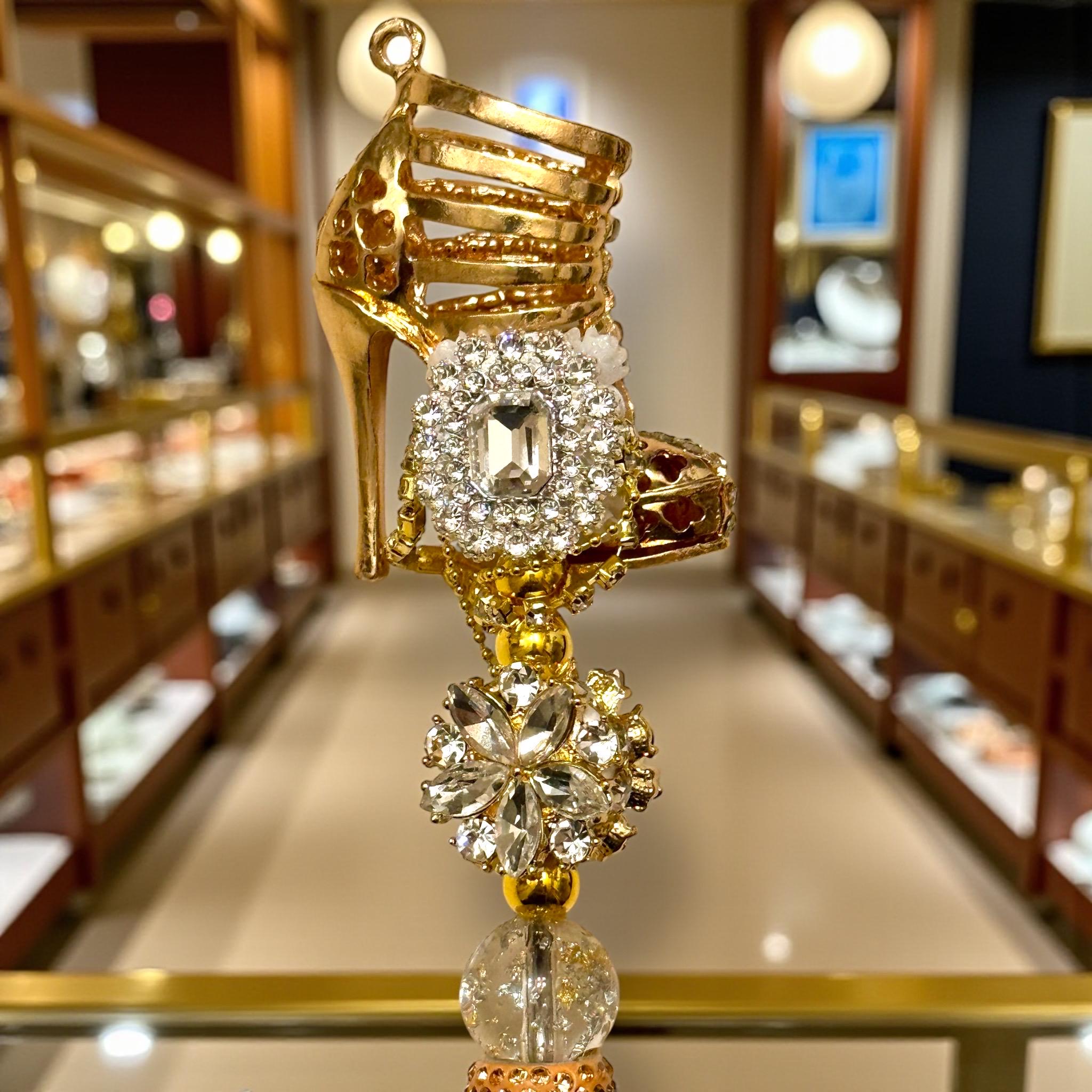 Step into elegance with the Gold Stiletto Bling Shoe Rhinestone Pen, where writing becomes a glamorous affair. This dazzling pen transforms routine tasks into moments of luxury, adding a touch of sparkle to your day.