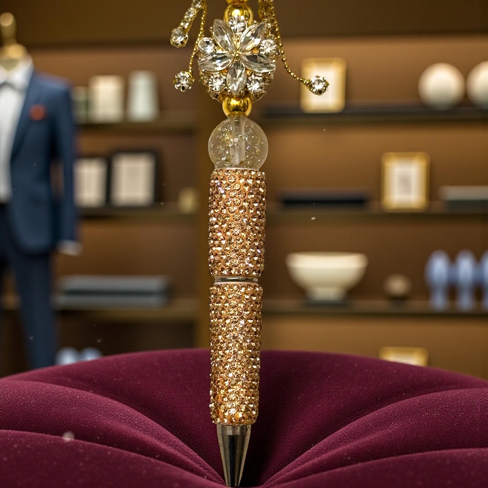 Eye-catching Details: Glittering rhinestones and intricate craftsmanship make this pen a standout accessory.
