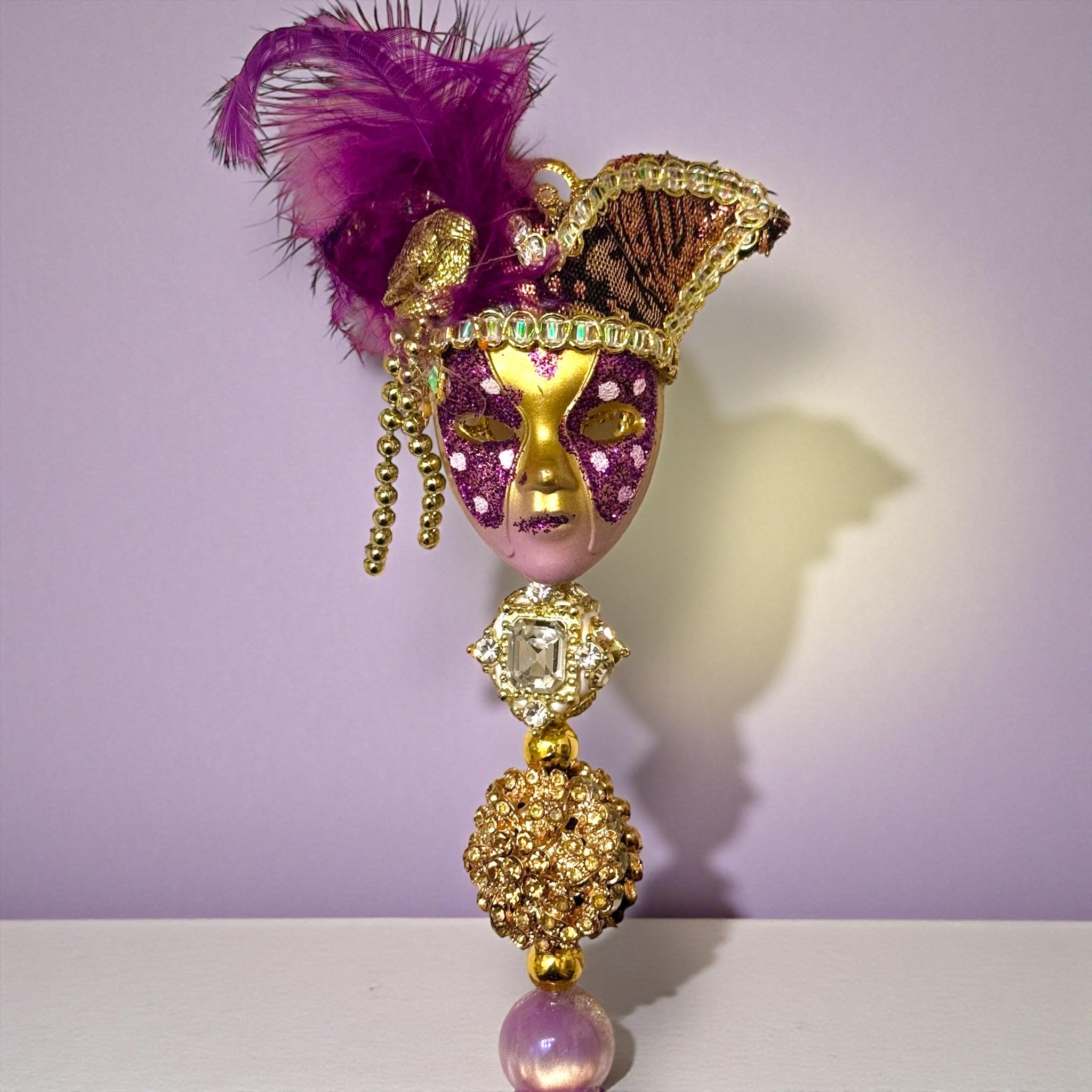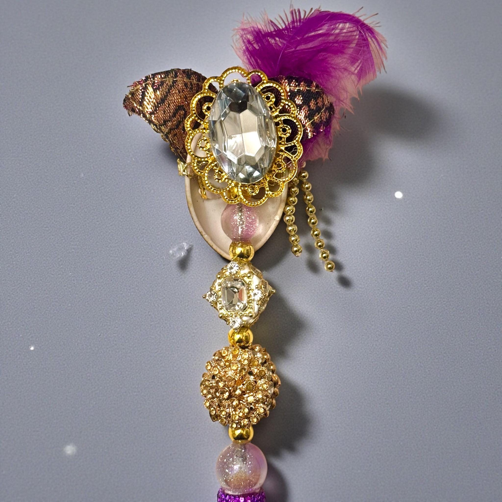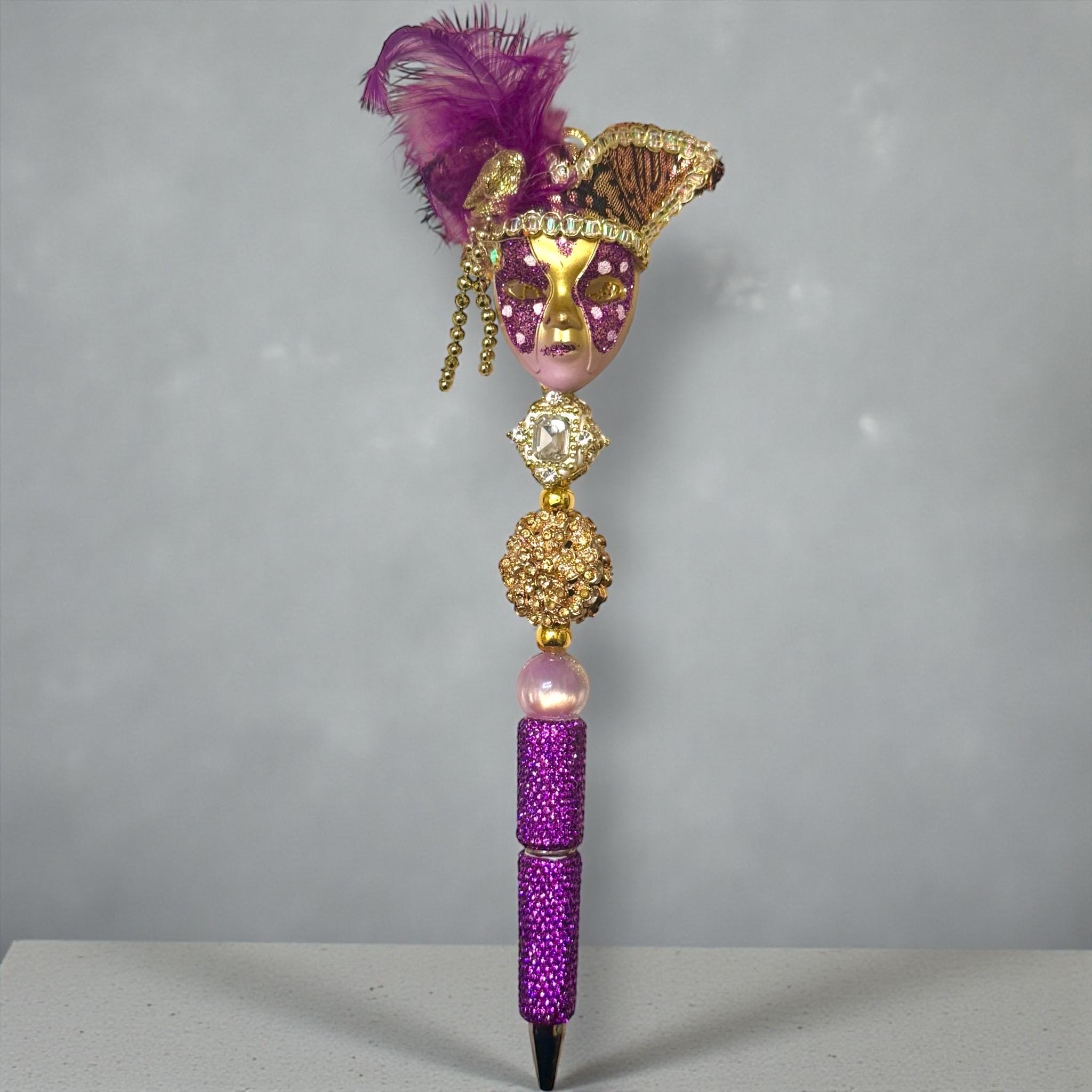 Step right up, Tigers! Unleash your inner Mardi Gras maestro with the Masquerade Purple and Gold Hand Made Mask Rhinestone Pen.