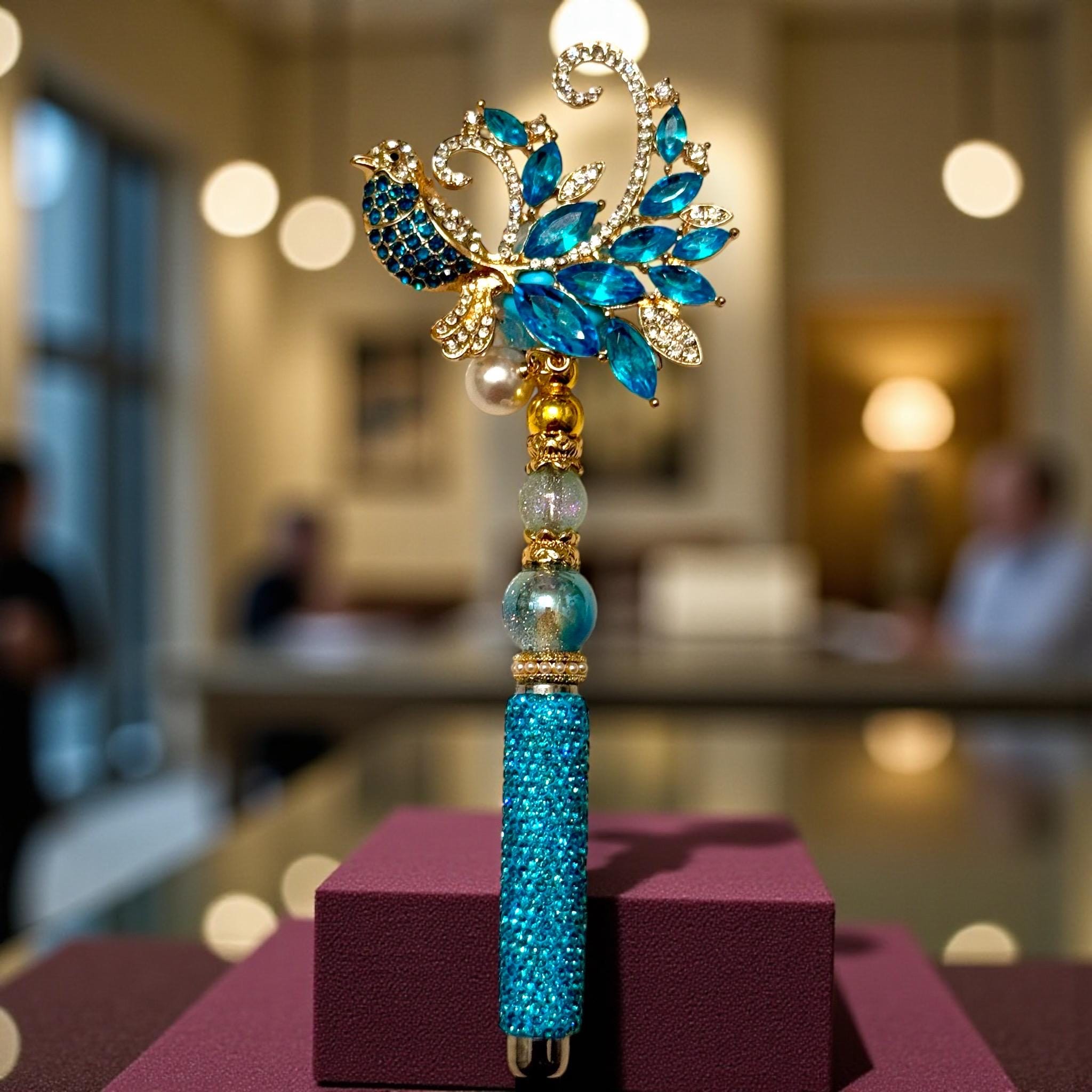 Striking Design: Featuring a stunning crystal blue bird motif adorned with rhinestones, this pen is a visual masterpiece that adds flair to your writing.